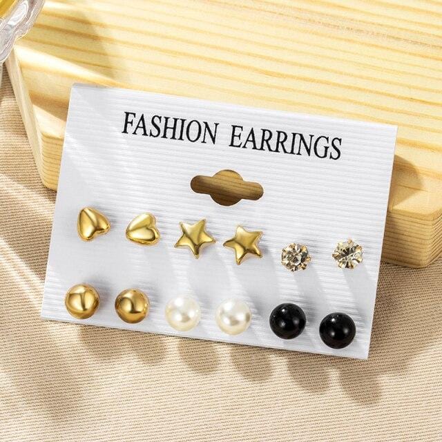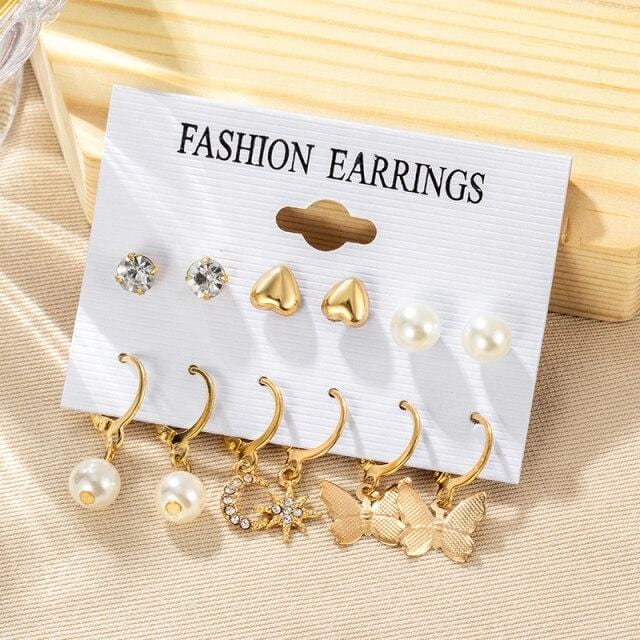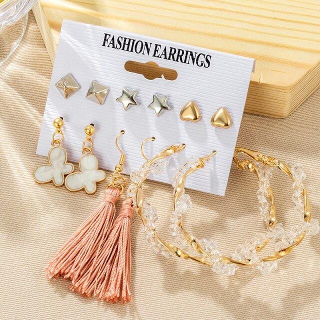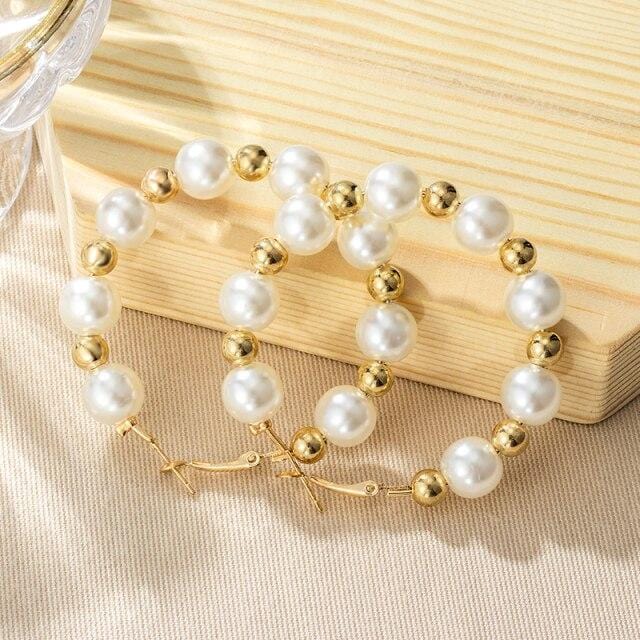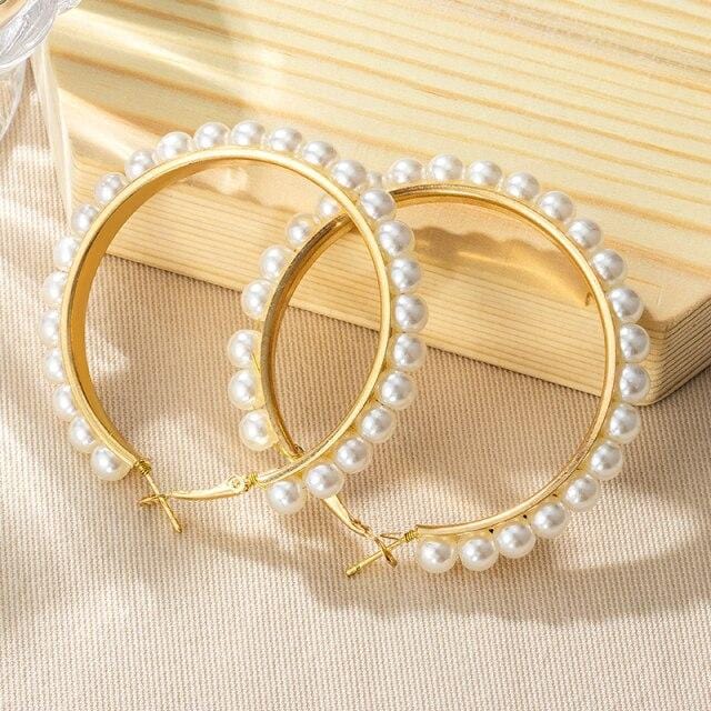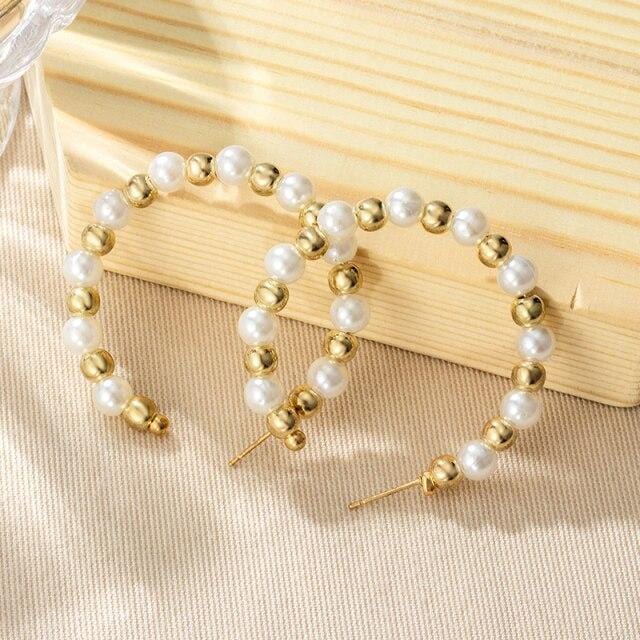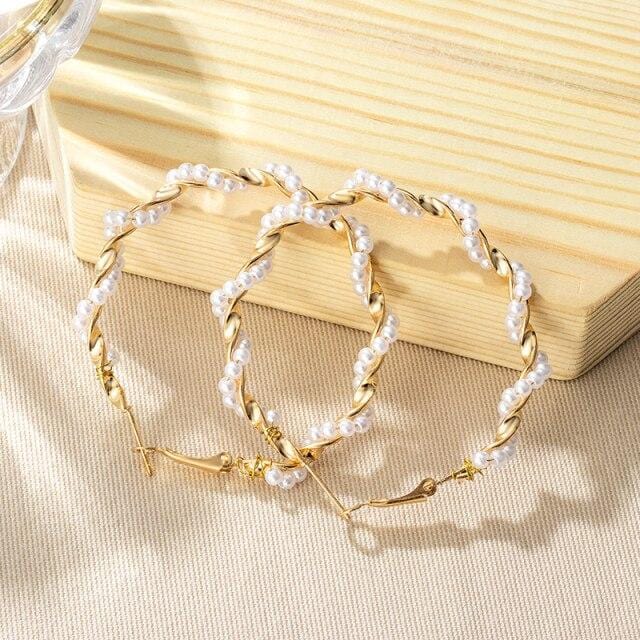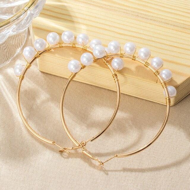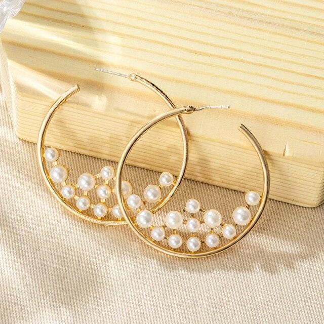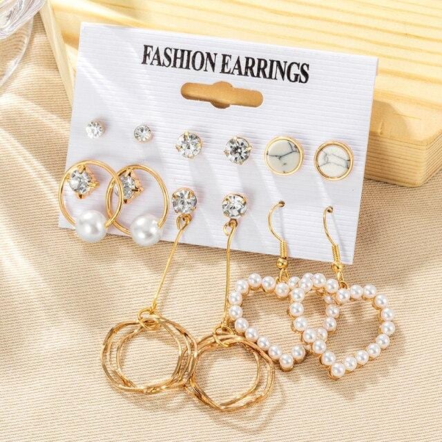 Fashion Pearl Hoop Tassel Earrings Sets For Women New Geometirc Statement Gold Metal Hanging Earrings 2021 Trend Wedding Jewelry