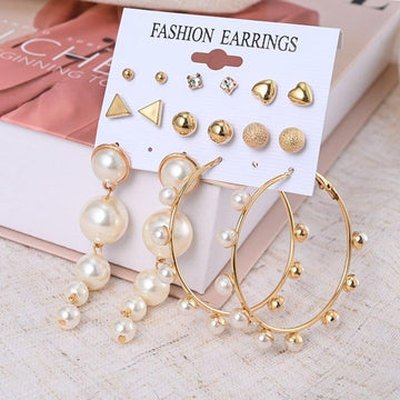 Fashion Statement Pearl Gold Drop Earrings Sets For Women Geometirc Metel Circle Dangle Earrings 2021 Trend Female Jewelry Gifts