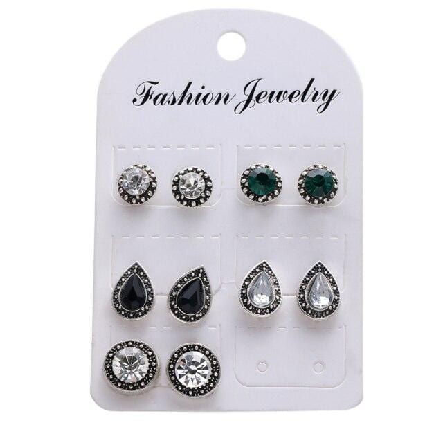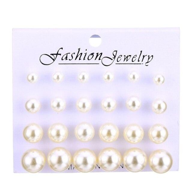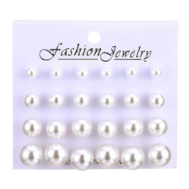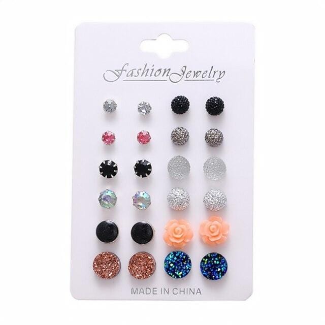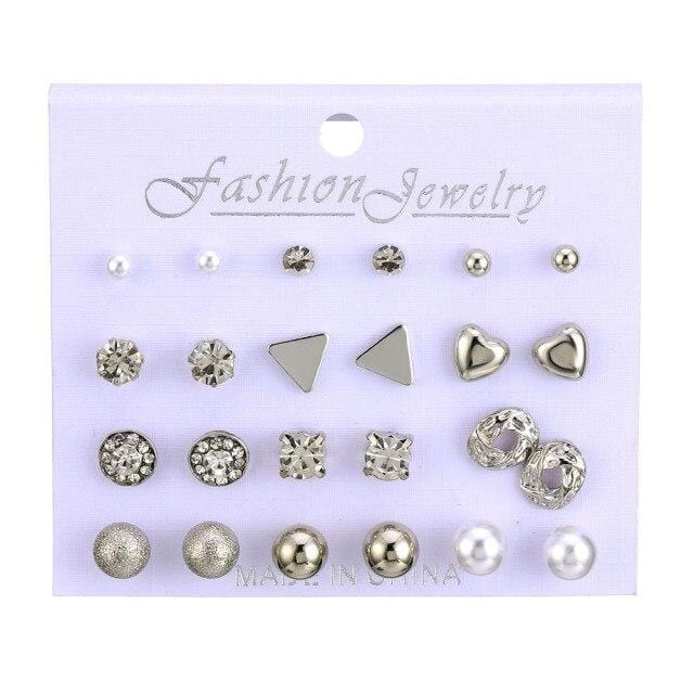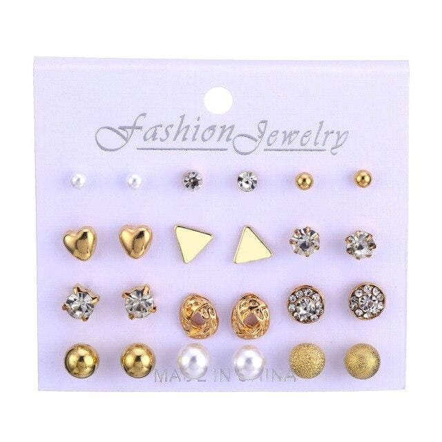 FNIO 12/ 9 Pairs/Set Pearl Crystal Studs Earrings Women' Girls Elegant Rose Heart Ear Studs Earring Jewelry Gift Accessories
