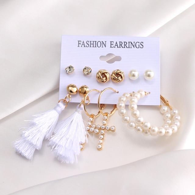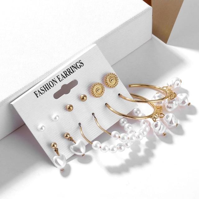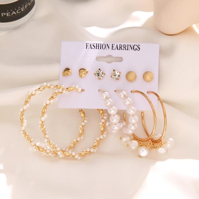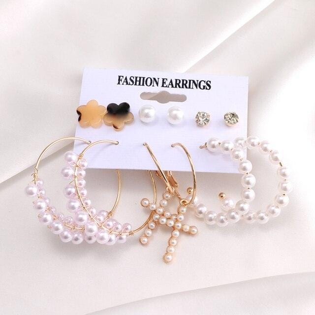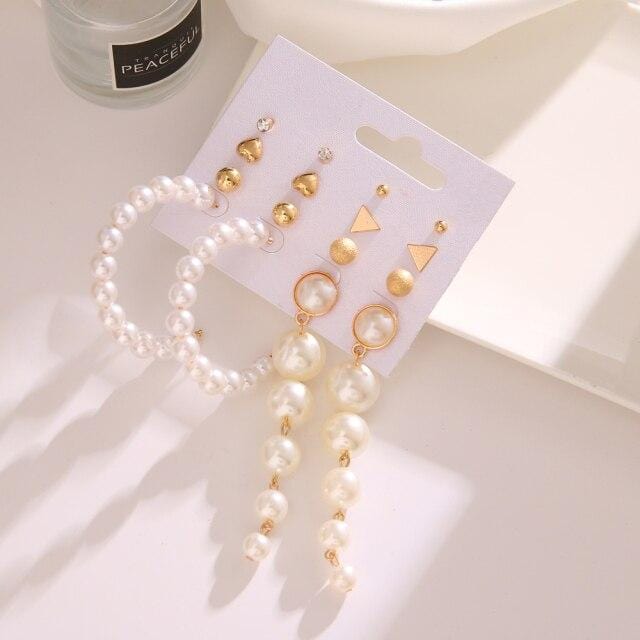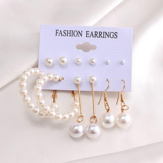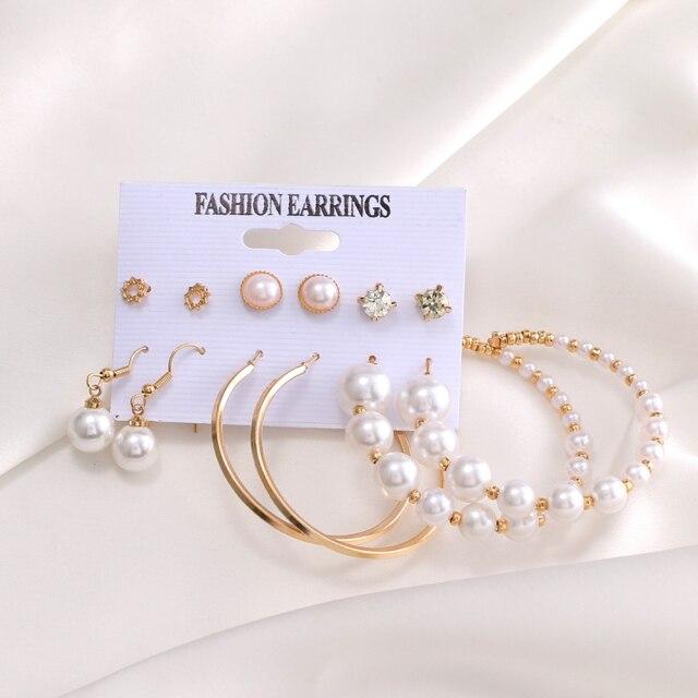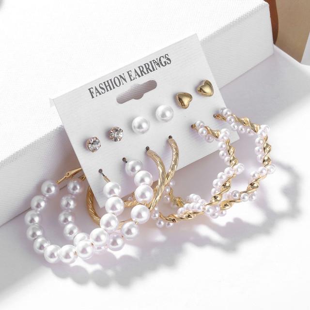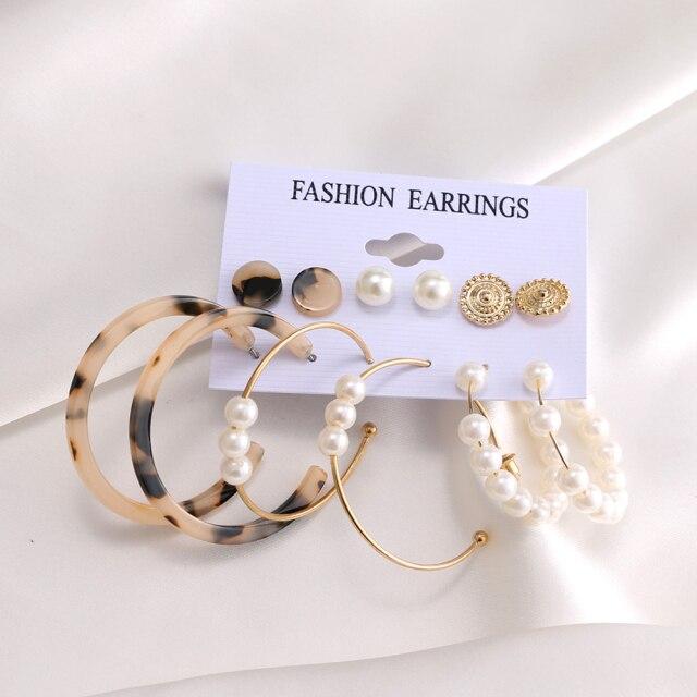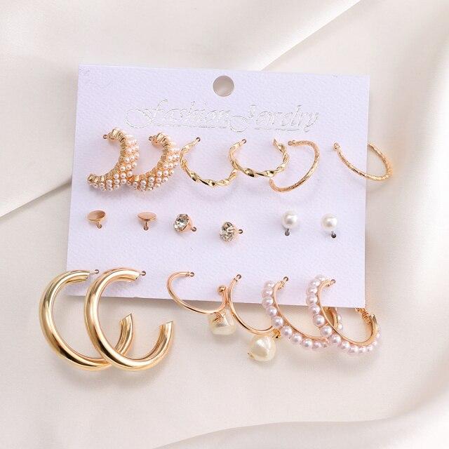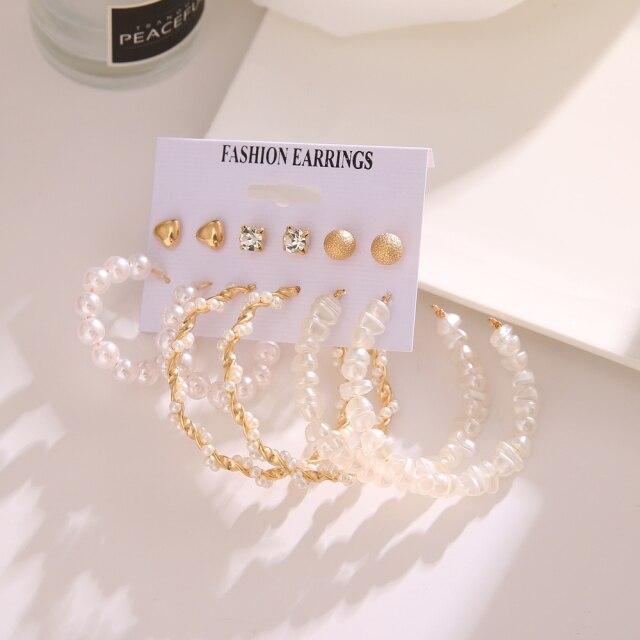 FNIO 2021 Fashion Gold Hoop Earrings Set Women Geometirc Pearl Earrings Metal Circle Punk Earring Female Fashion Jewelry