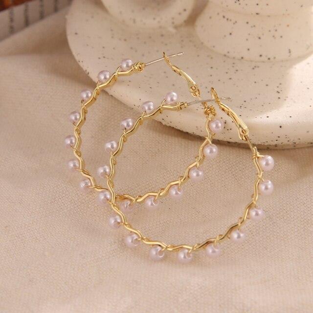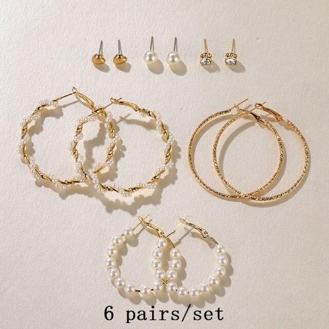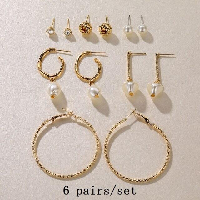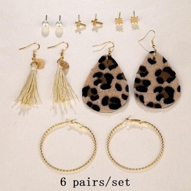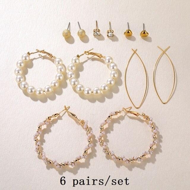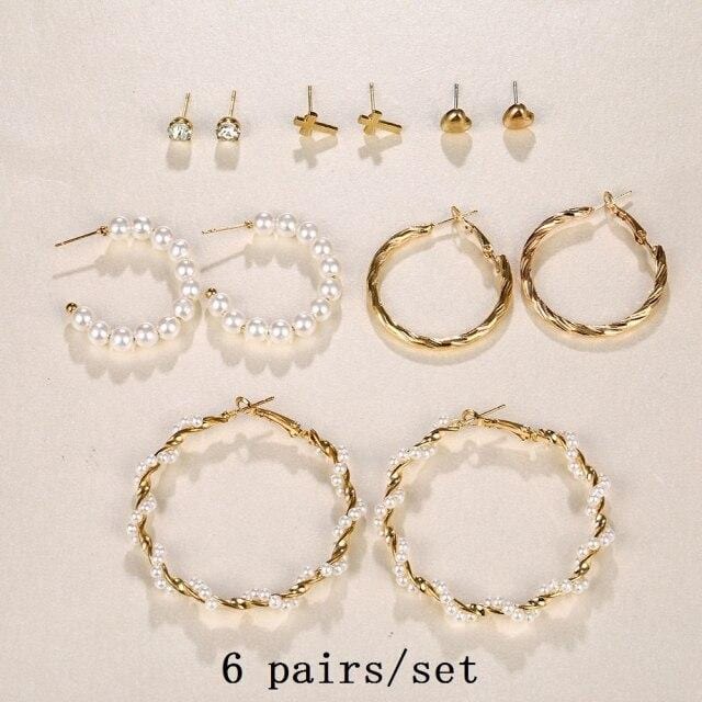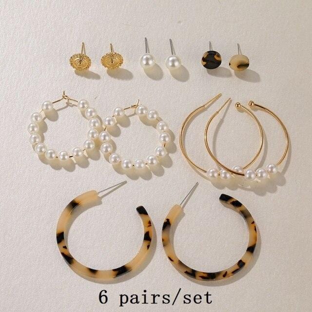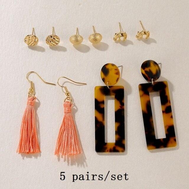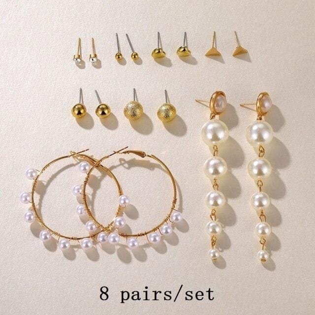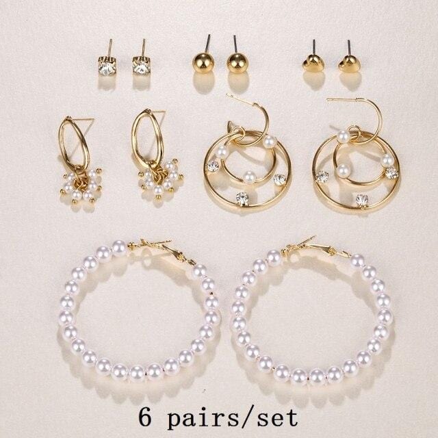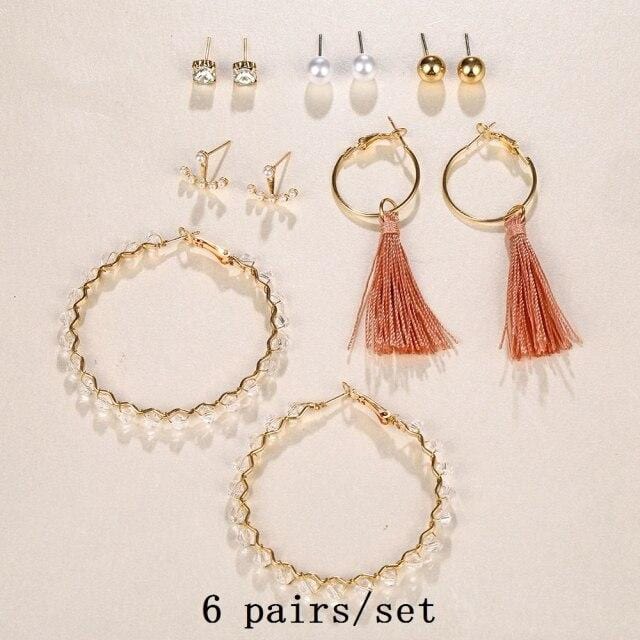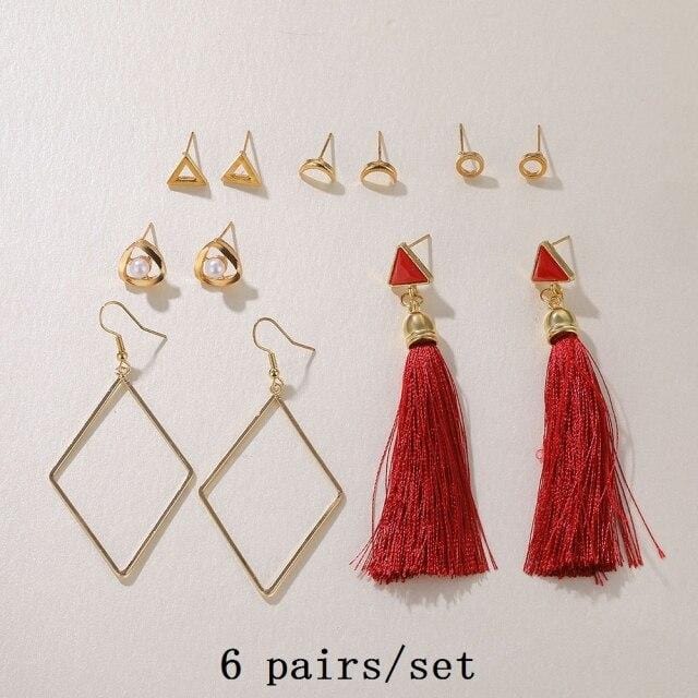 FNIO 2021 Fashion Pearl Drop Earrings for Women Bohemian Style Cross Tassel Geometric Dangle Earring Set