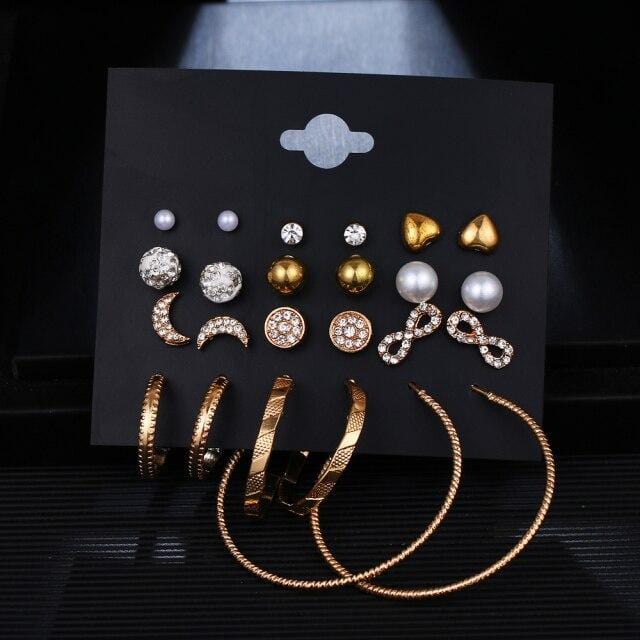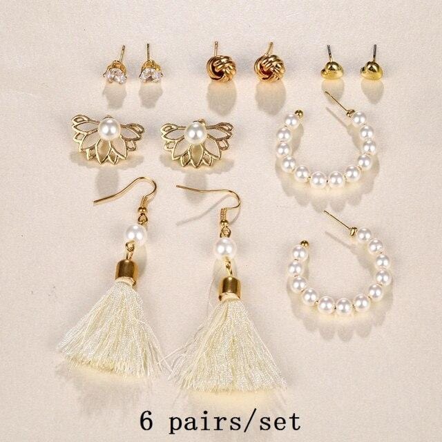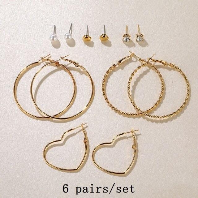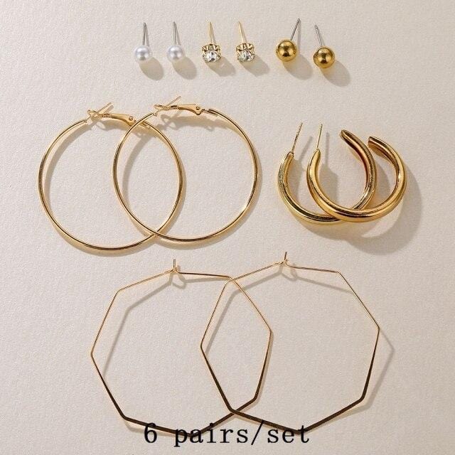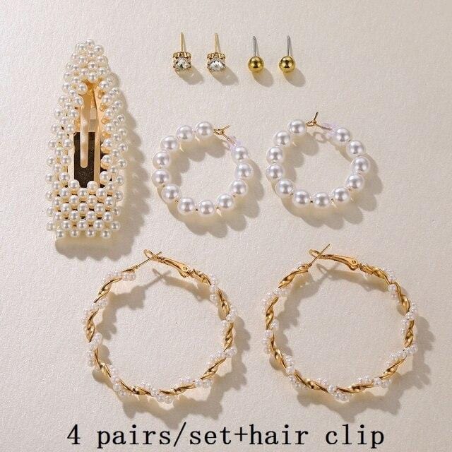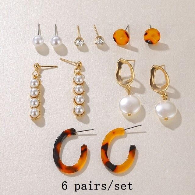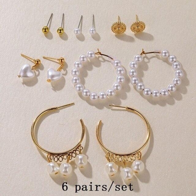 FNIO 2021 Trendy Hoop Earrings Set Women Pearl Earrings Metal Circle Punk Earring Female Fashion Jewelry