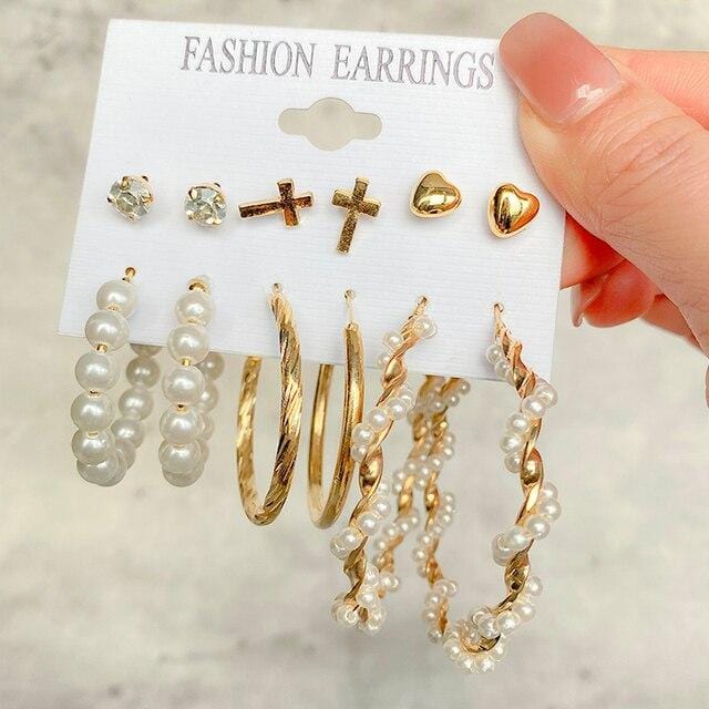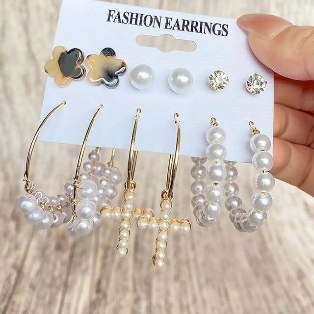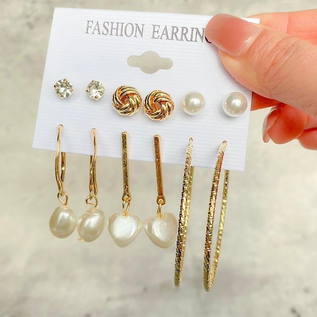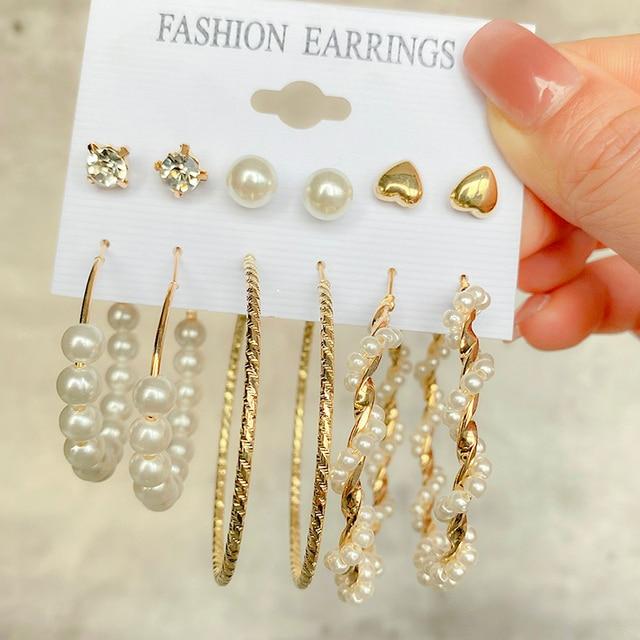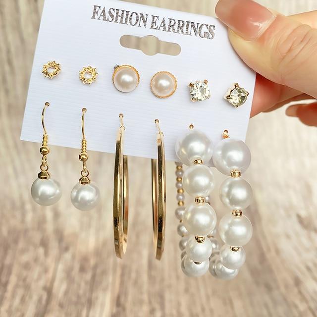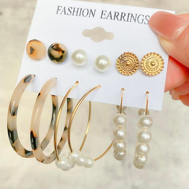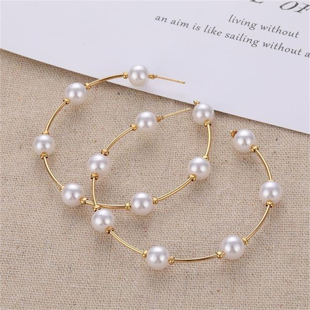 FNIO Big Circle Hoop Earrings For Women Simple Punk Ear Rings Brincos Round Acrylic Pearl Earring Set Fashion Jewelry Party Gift