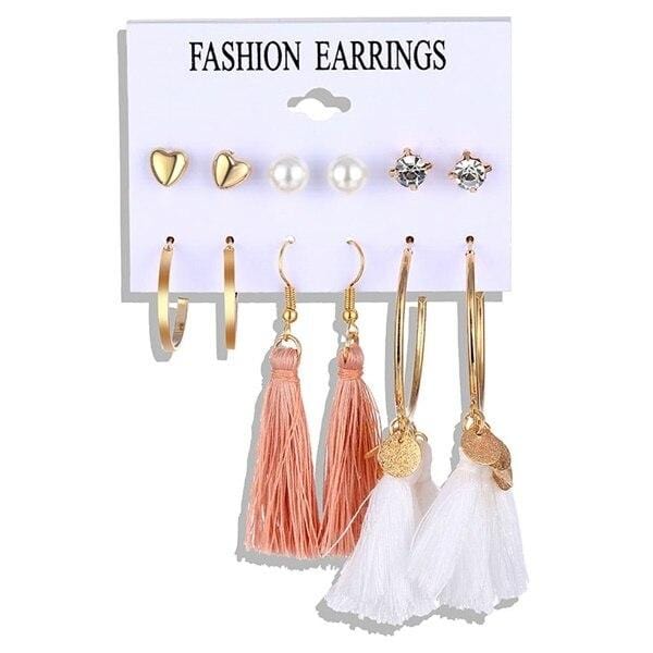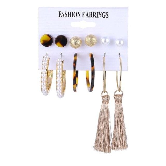 FNIO Circle Acrylic Drop Earrings Set Tassel Pearl Earrings For Women Girl Bohemian Fashion Jewelry 2020 Geometric Hoop Earings