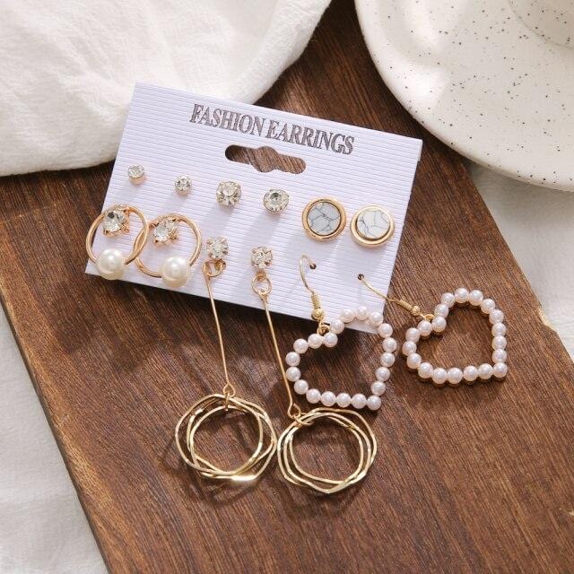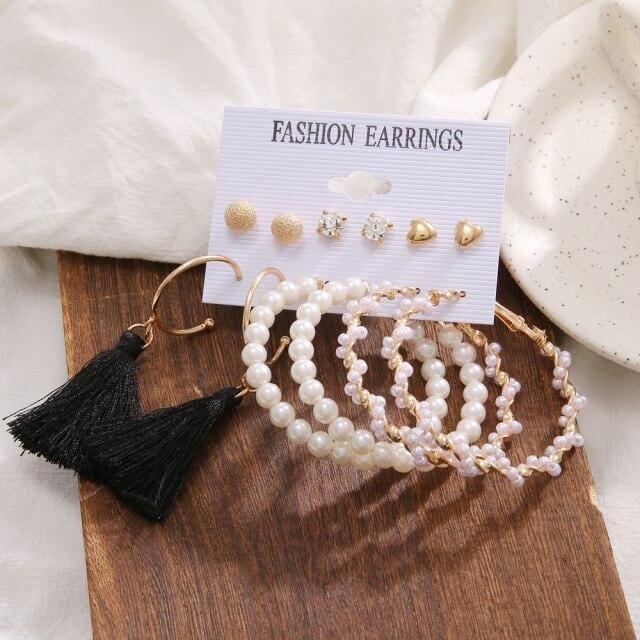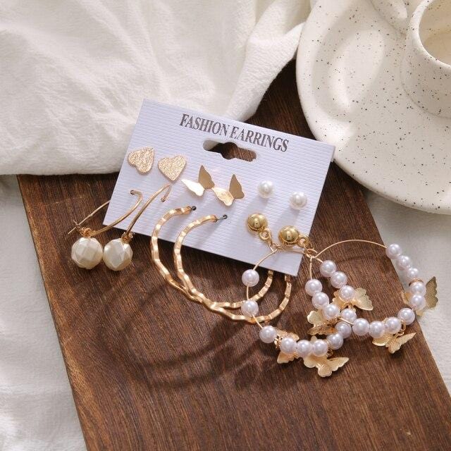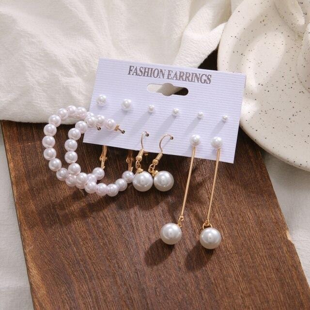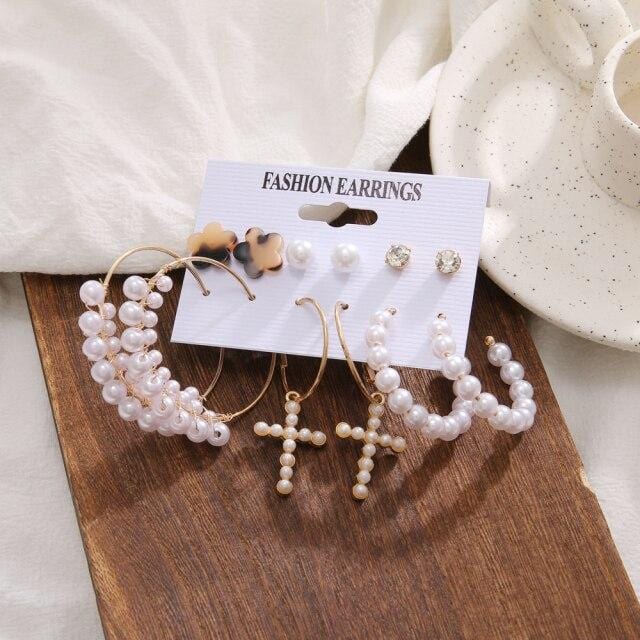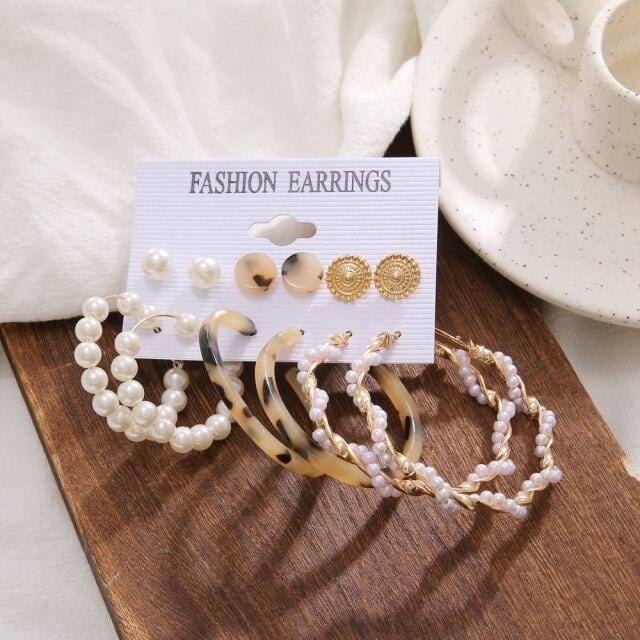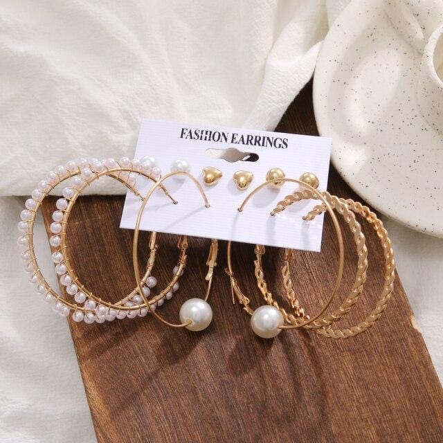 FNIO Trendy Gold Hoop Earrings Set Women Pearl Earrings Oversize Metal Circle Punk Earring 2021 Female Fashion Jewelry