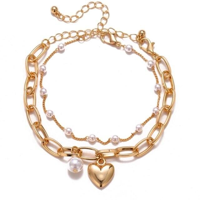 FNIO Vintage Heart Pendant Bracelets Bangles Women Punk Chunky Imitation Pearl Chain Bracelet 2020 Couple Wedding Jewelry Gifts