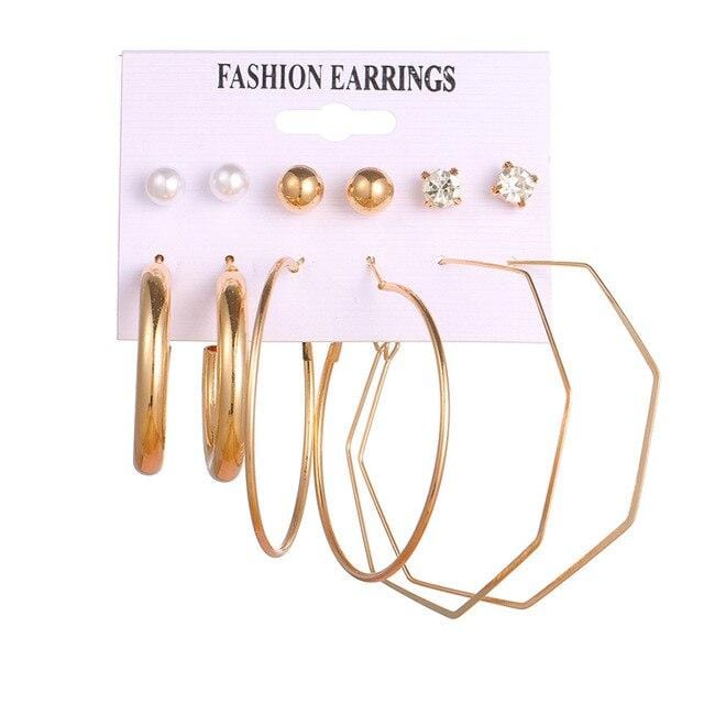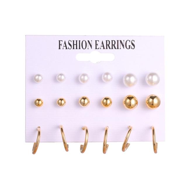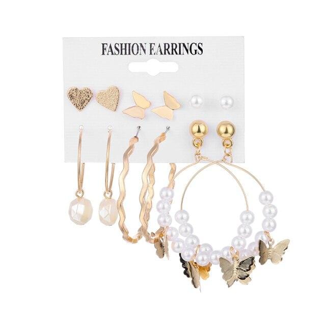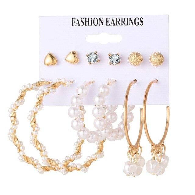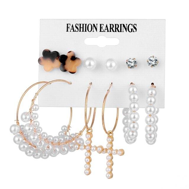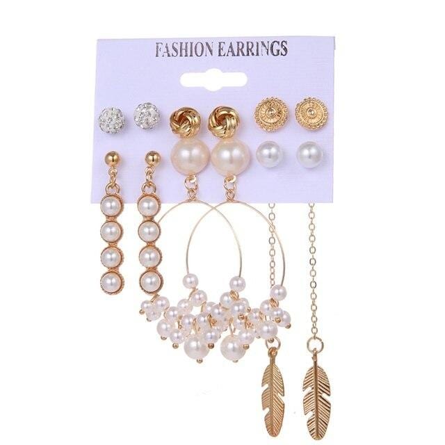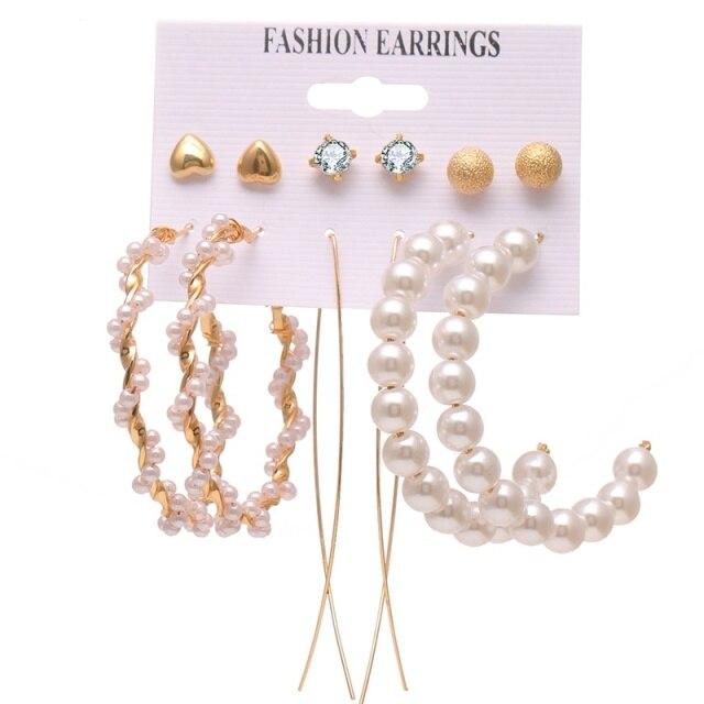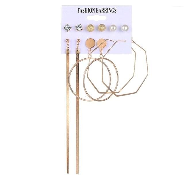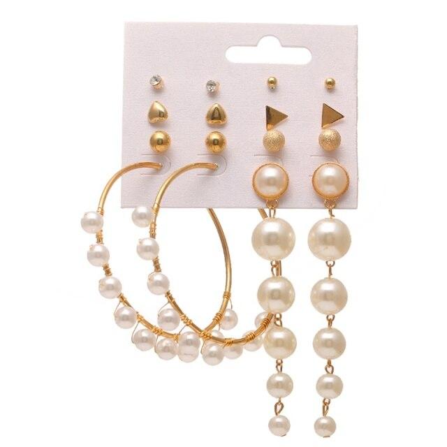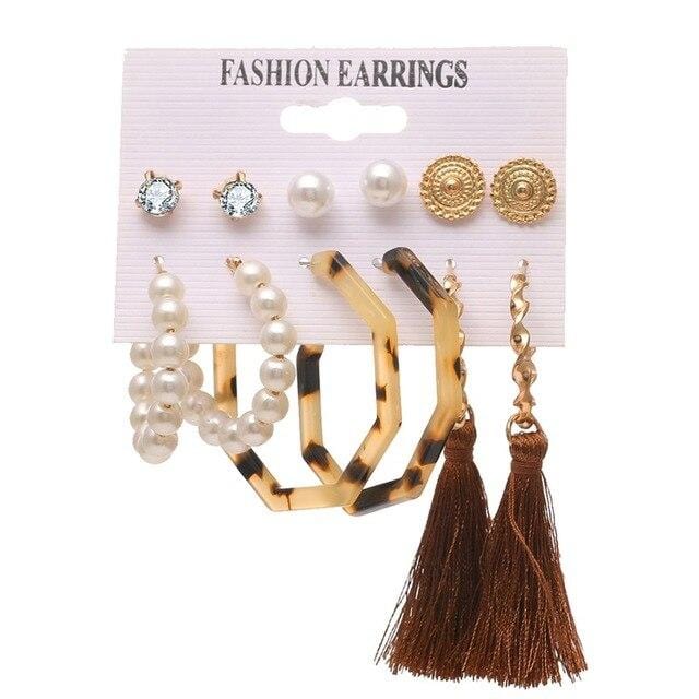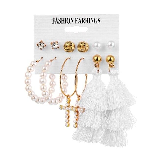 FNIO Women's Tassel Pearl Earrings For Women Bohemian Earrings Set Big Geometric Metal Gold Drop Earring 2020 Fashion Jewelry