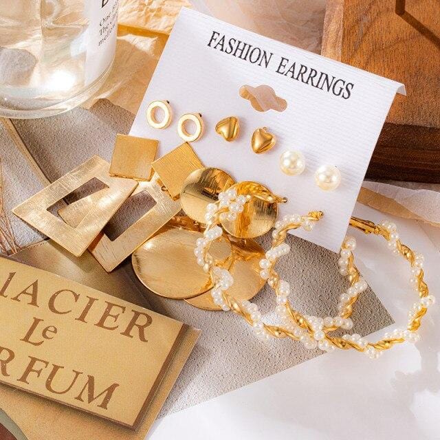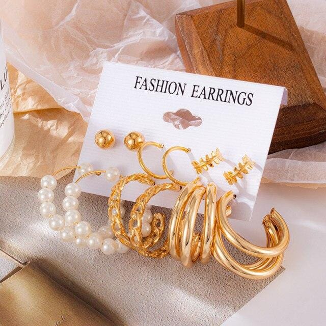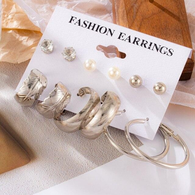 Geometirc Pearl Hoop Women's Earrings Set For Women Fashion Big Resin Round Statement Earrings 2021 Trendy Accessories Jewelry