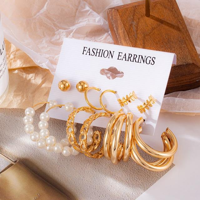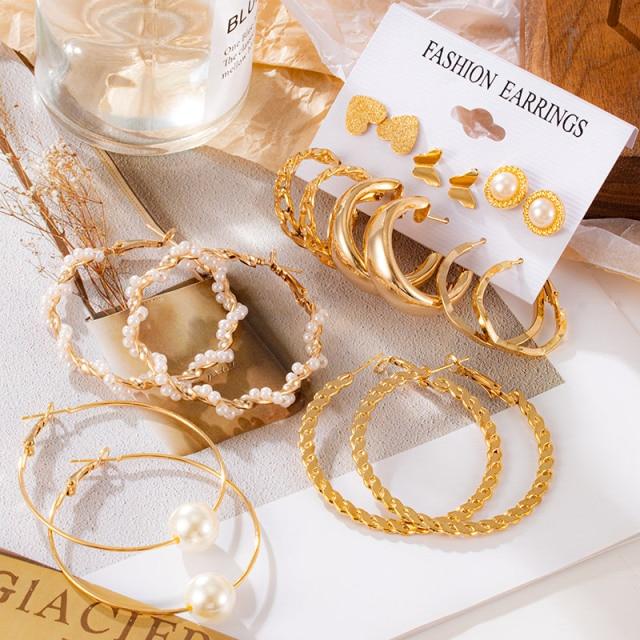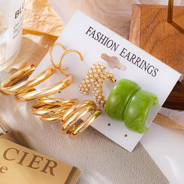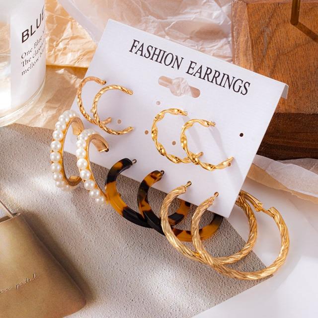 Geometirc Statement Big Acrylic Round Hoop Women's Earrings Set For Women Fashion Pearl Earrings 2021 Trendy Accessories Jewelry