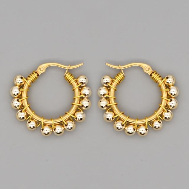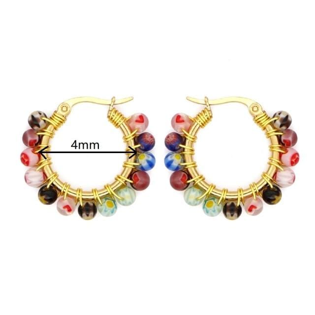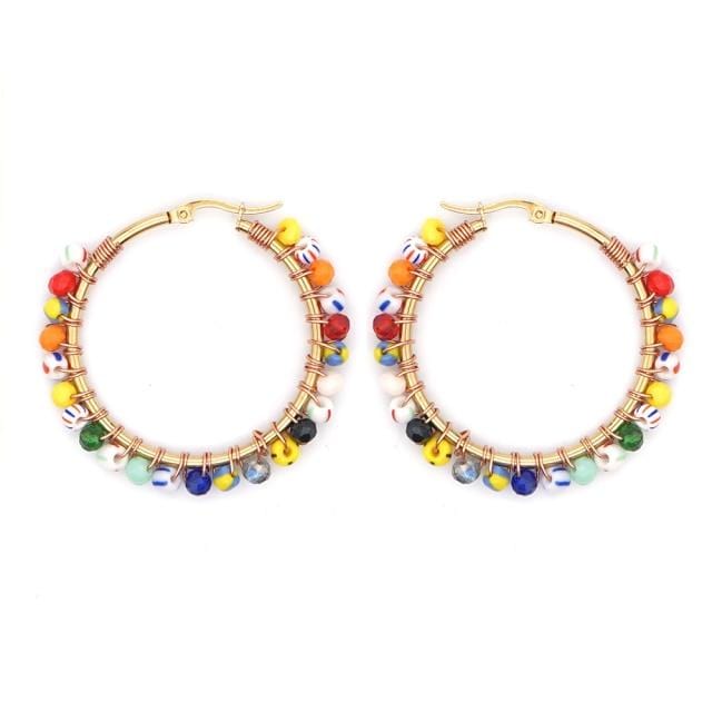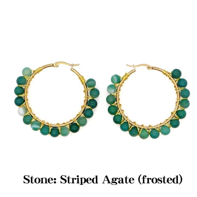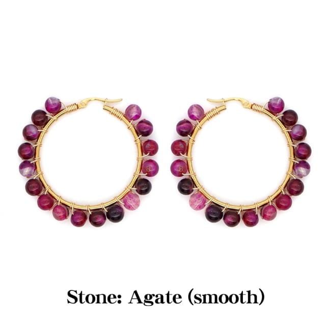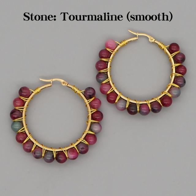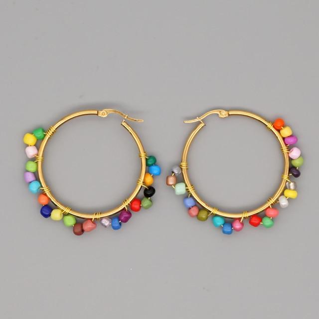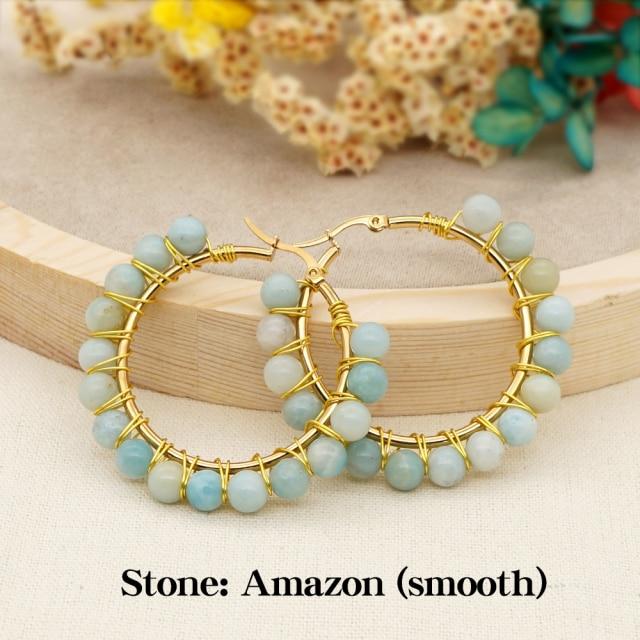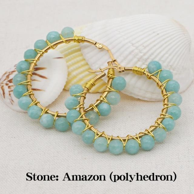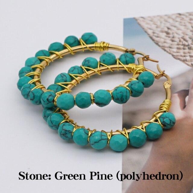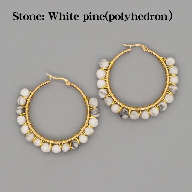 Go2Boho Crystal Earring for Women Boho Jewelry Trendy Natural Stone Pearl Jewellery Bohemian Ear Ring Gold Circle Hoop Earrings