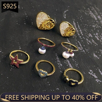 High Quality 925 Sterling Silver Heart Shape Pearl Monaco Jewelry Zircon Couples Ring Romantic Fashion Enthusiasm Jewelry Gift