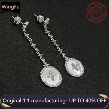 High quality WOMEN S925 sterling silver earrings round white mother-of-pearl zircon fashion earrings luxury brand jewelry