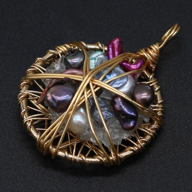 Hot Sale Natural Stone Gem Round Pearl Pendant DIY Elegant Retro Necklace Earrings Sweater Chain Jewelry Accessories Gift Making