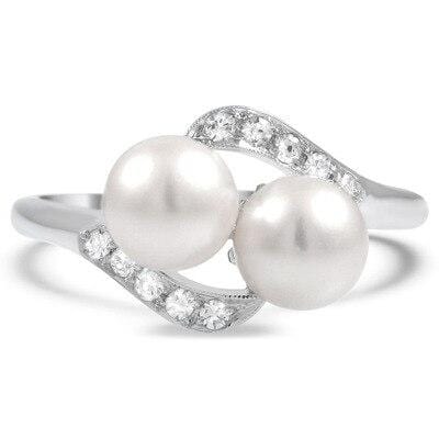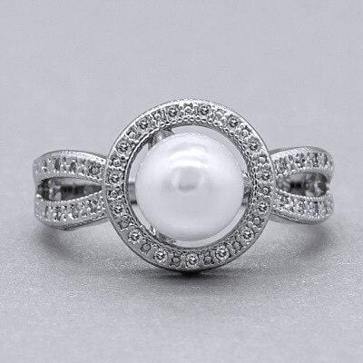 Huitan Romantic Simulated Pearl Rings For Women Luxury Wedding Anniversary Accessories Engagement Rings For Female Wholesale