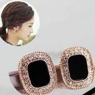 Luxurious black retro gem stone simulated pearl delicate ear clip without pierced,women clip earings no pierced