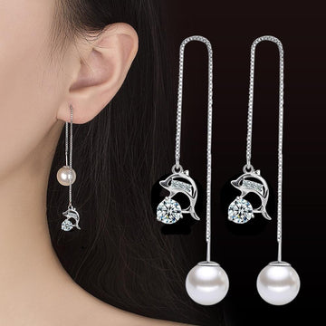 NEHZY 925 Sterling Silver New Woman Fashion Jewelry Ear Line Blue Pink Zircon Crystal Pearl Dolphin Long Tassel Retro Earrings