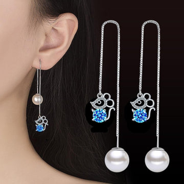 NEHZY 925 Sterling Silver New Woman Fashion Jewelry Ear Line Blue Pink Zircon Crystal Pearl Mouse Long Tassel Retro Earrings
