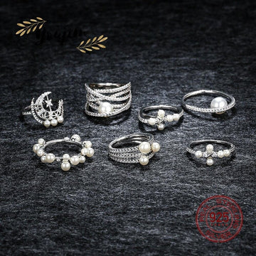 New Fashion 925 Silver Women Zircon Pearl Moon Ring Luxury Monaco Exquisite Jewelry Gift