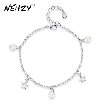 New ladies fashion silver bracelet high quality five-pointed star freshwater pearl retro brand jewelry Bracelet length 16.8+4CM