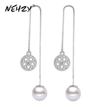 New ladies fashion silver earrings high quality crystal freshwater pearls retro hollow popular ear jewelry long section 11CM