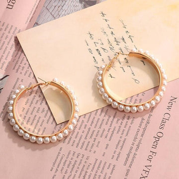 New Simple Pearl Hoop Large Drop Earrings For Women Girls Earrings Circle Statement Fashion Gold Wedding Earrings 2020 Jewelry