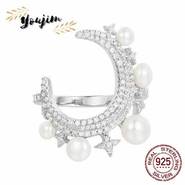 New style zircon 925 silver star and moon pearl ring women luxury fashion gift Monaco exquisite jewelry