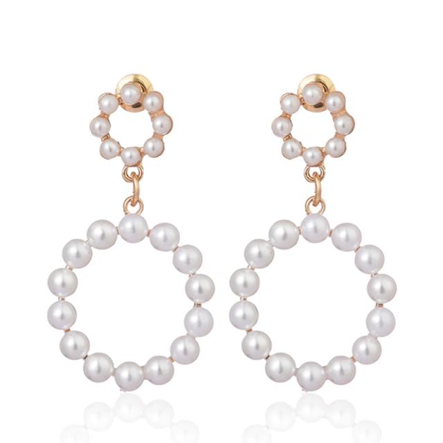 New Trendy Fairy Simulated Pearl Women Long Earrings White Round Pearl Wedding Pendant Earrings Korean Fashion Jewelry Earrings