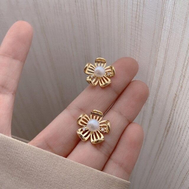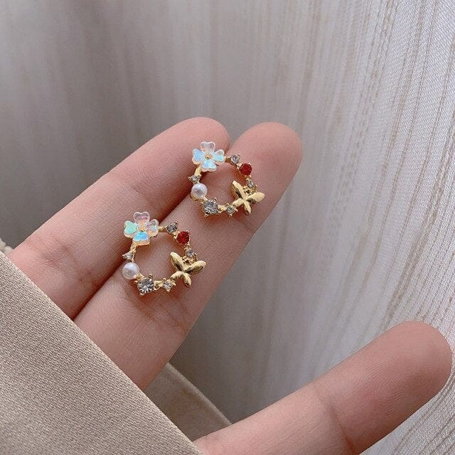 Pearls Korean Earings Retro Flowers Butterfly Earrings Geometry Stars Ear Rings for Women Smiley Love Pearl Gem Earrings Studs