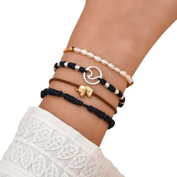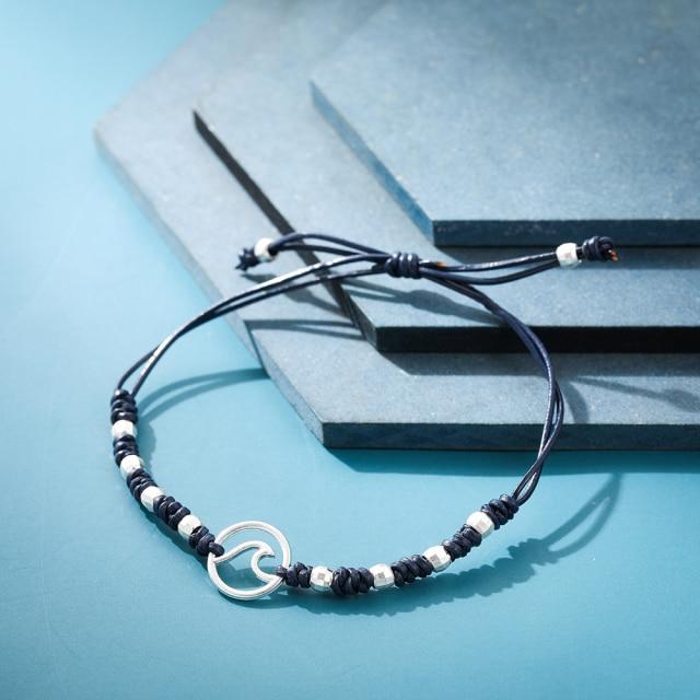 Retro Couple Bracelets Cord Braid Leather Rope Chain Bracelet Unisex Sea Wave Unicorn Pendant Pearl Bracelets Bangles Jewelry