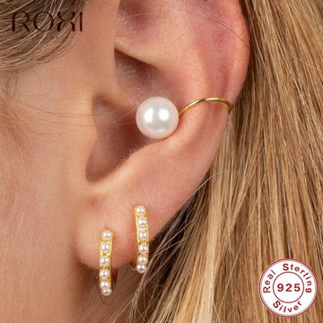 ROXI 925 Sterling Silver Pearl Earrings Wedding Jewelry Single Row Freshwater Pearl Stud Earrings for Women Brincos Xmas Gifts