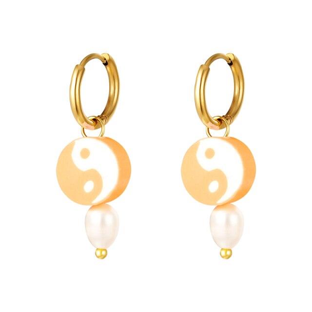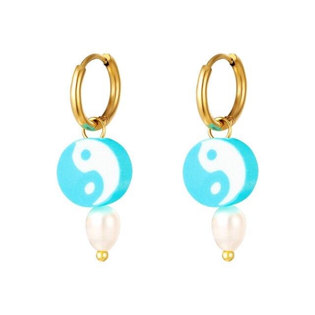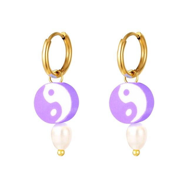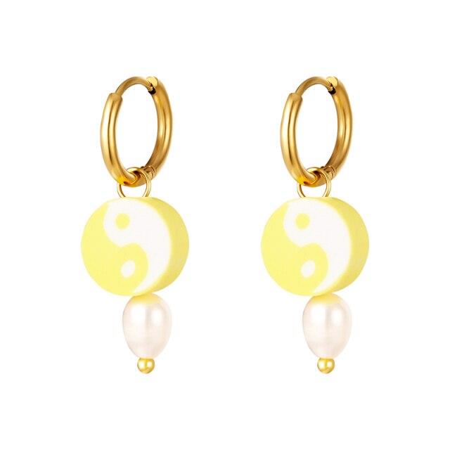 ROXI Colorful Yin Yang Polymer Clay Hoop Earrings for Women Fashion Pearl Jewelry Earring Huggie Earrings Pendientes aros mujer