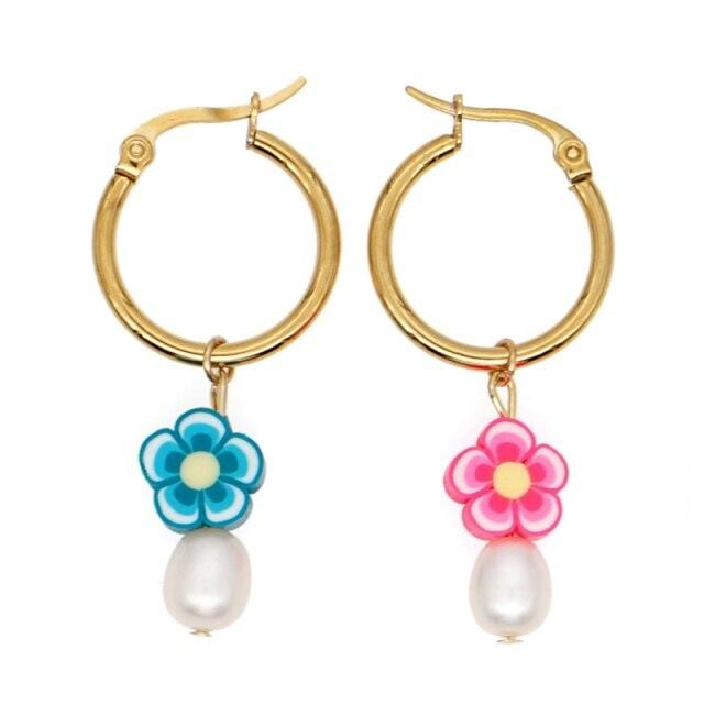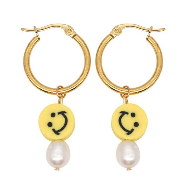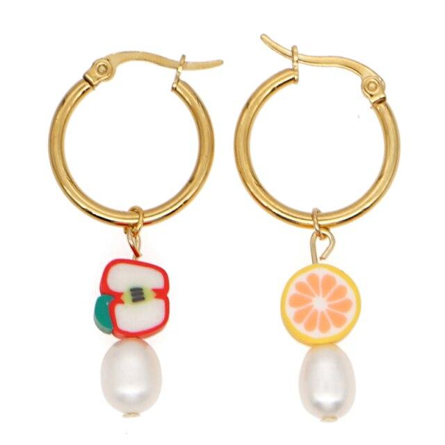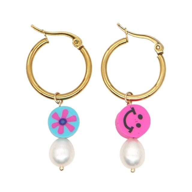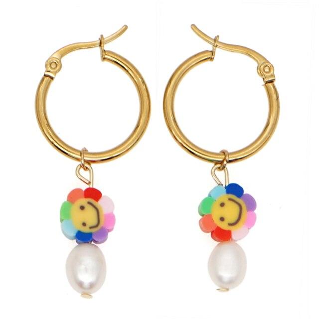 ROXI Cute Colorful Polymer Clay Smiley Flowers Fruit Hoop Earrings for Women Summer Pearls Jewelry Earrings Huggie Pendientes