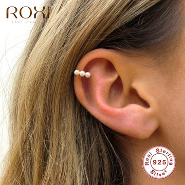 ROXI Elegant Three Pearls No Piercing Clip Earrings for Women Engagement Wedding Jewelry Ear Cuff 925 Sterling Silver Earrings