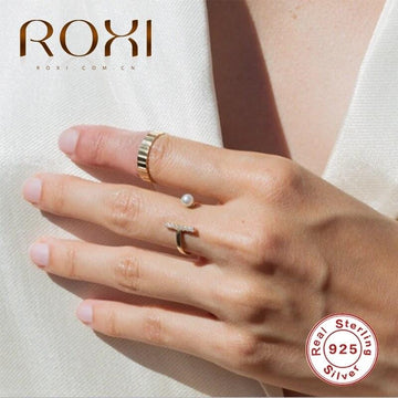 ROXI Fashion 925 Sterling Silver Open Luxury Pearl Rings for Women Girls Weeding Jewelry Ring Anillos Bijoux Femme Adjustable