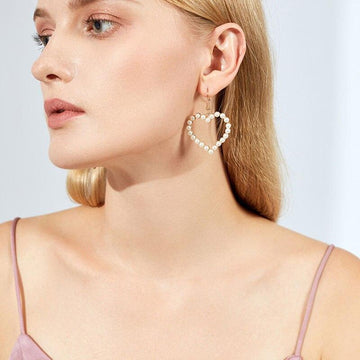 Simple Korean Plain Gold Metal Pearl Heart Earrings For Women Unique Statement Big earing 2020 New Trend FashionEarrings Jewelry