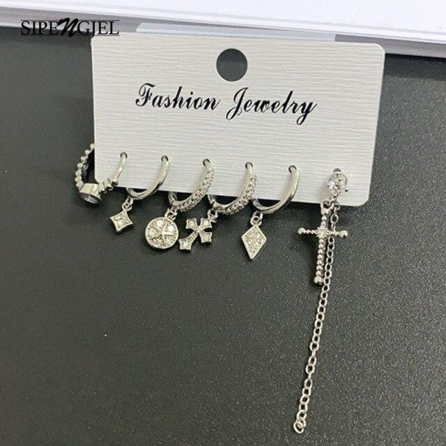 SIPENGJEL Fashion Cross Pearl Hoop Earrings Set Long Chain Dangle Earrings For Women Jewelry 2021 wholesale