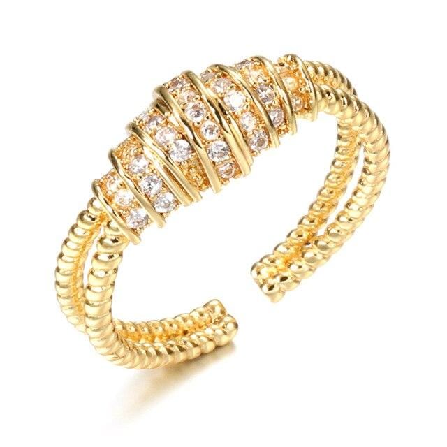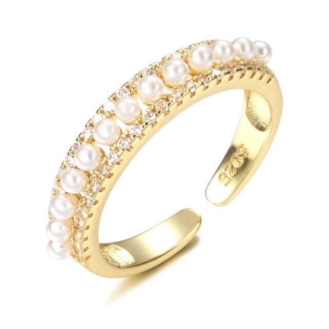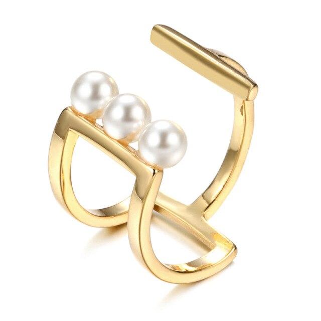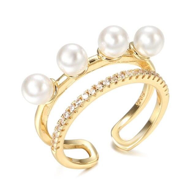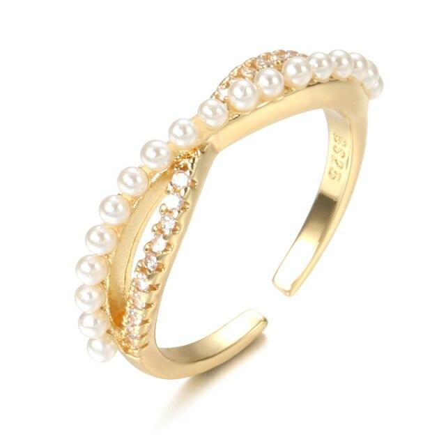 SIPENGJEL Fashion Cubic Zircon Pearl Cross Rings Gold Color Adjustable Open Finger Rings For Women Engagement Jewelery