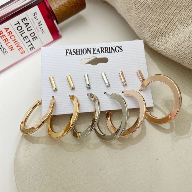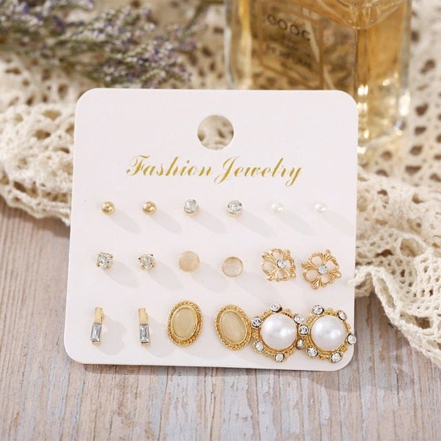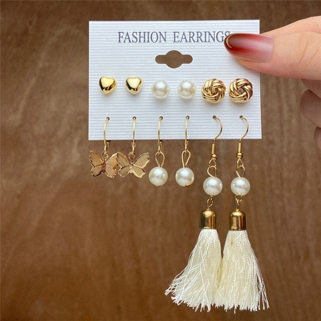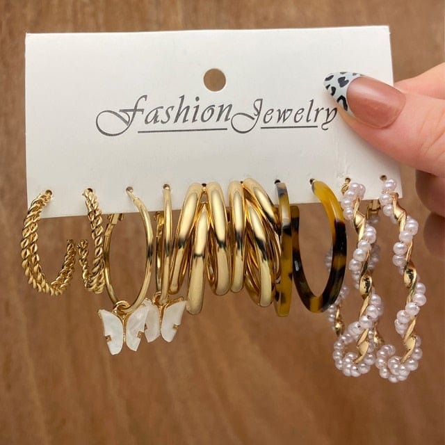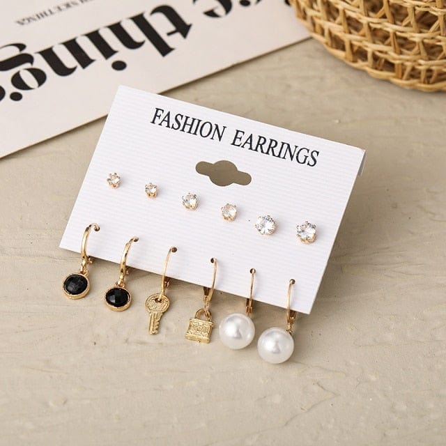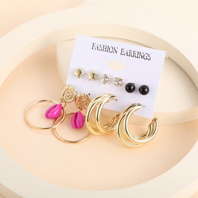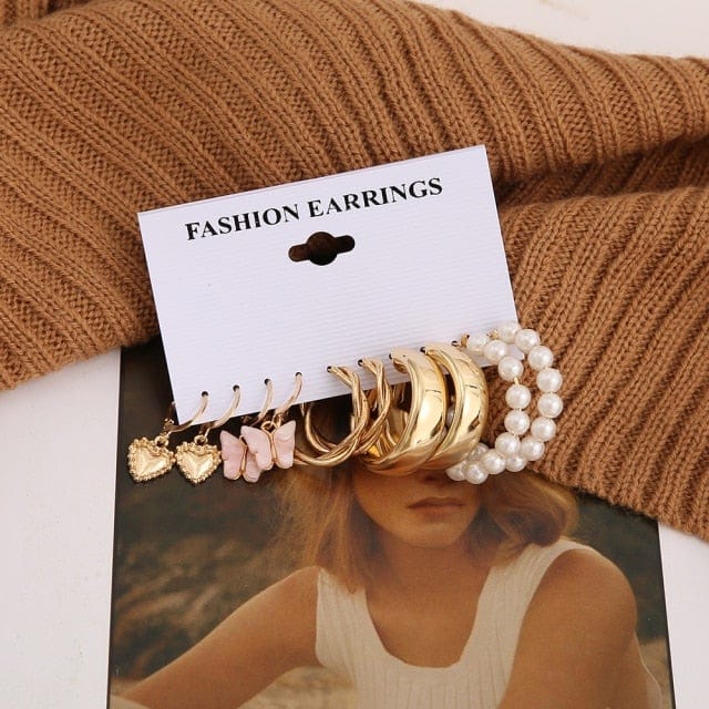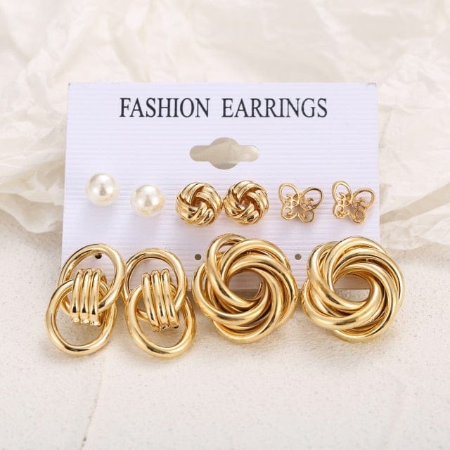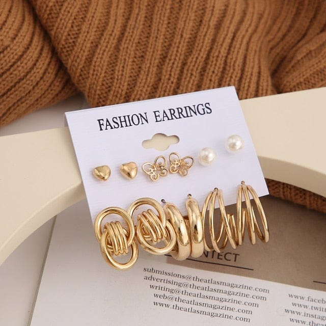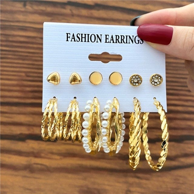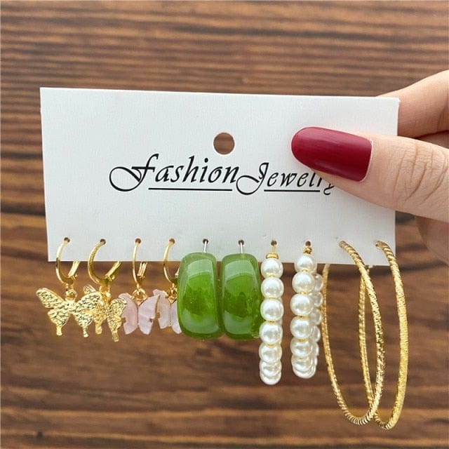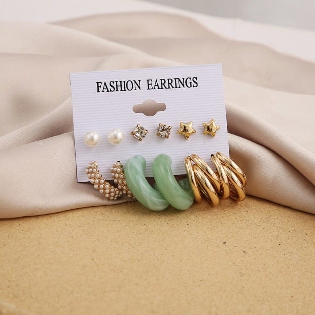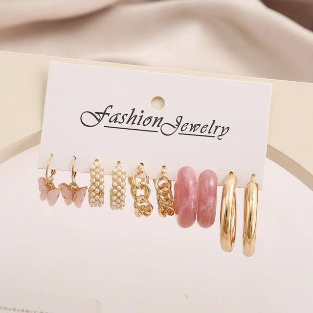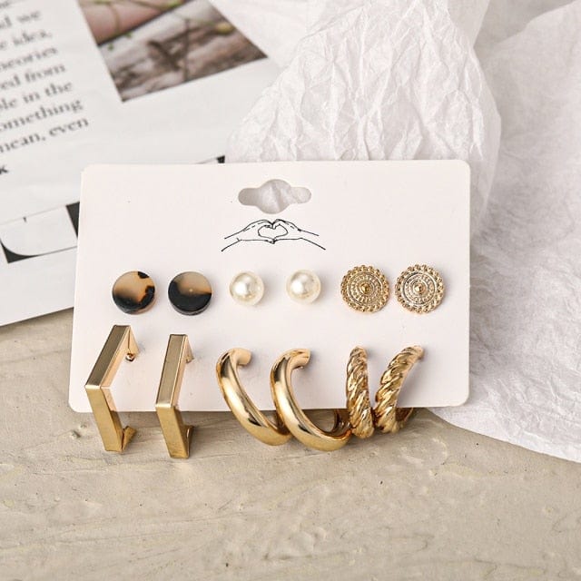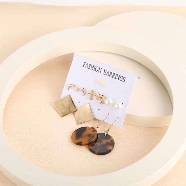 Trendy Exquisite Pearl Metal Earrings Set For Women Geometric Circle Dangle Drop Earrings Acrylic Set of Earrings Jewelry