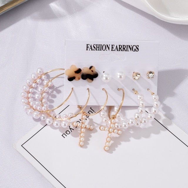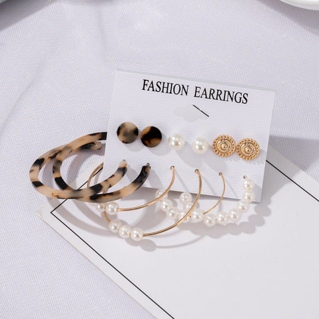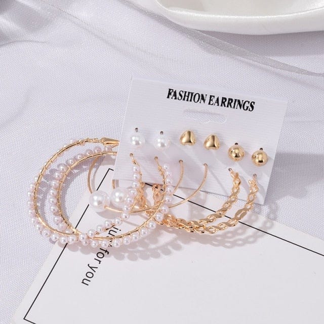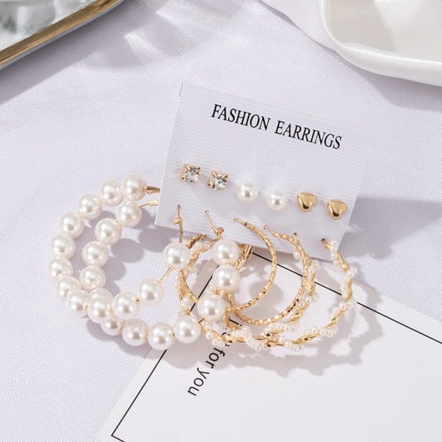 Women's Earrings Set Korean Pearl Hoop Earrings for Women Geometirc Gold Circle Earring 2021 Trend Jewelry Gift Accessories