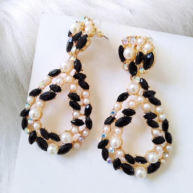 Ztech Luxury Crystal Drop Earrings For Women Imitation Pearl Big Statement Earrings Large Rhinestone Earings Fashion Jewellery