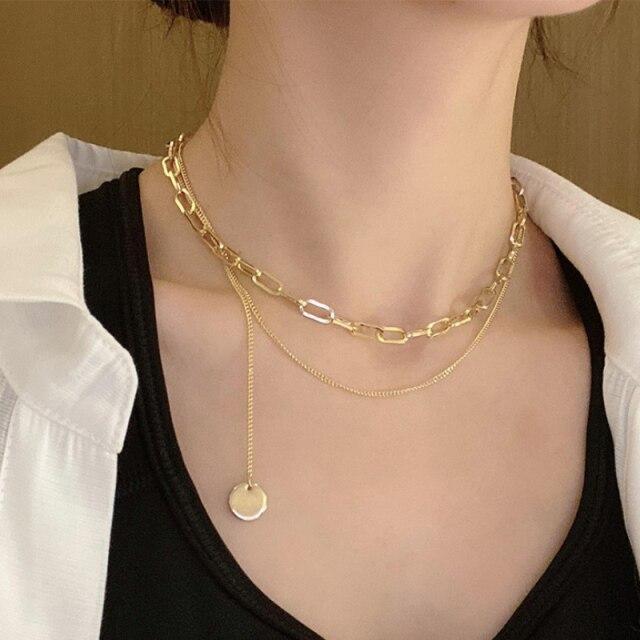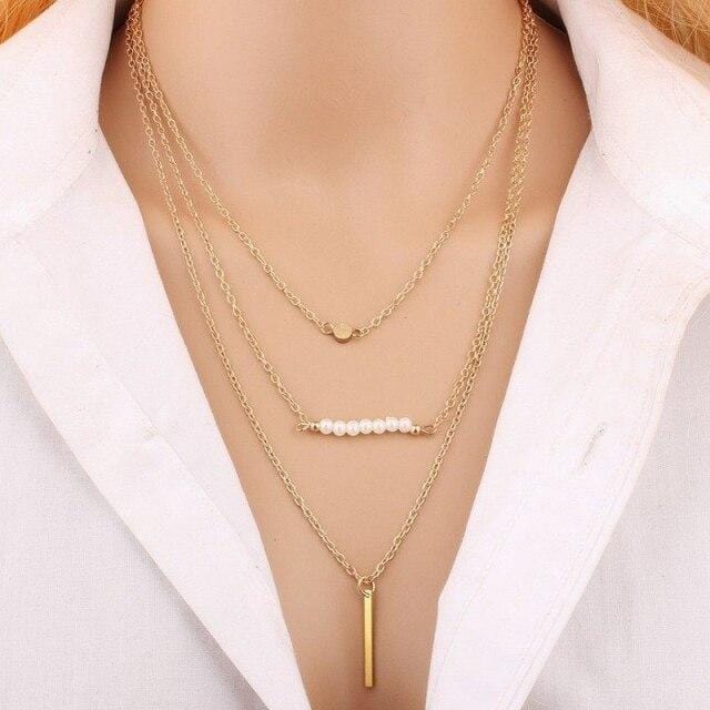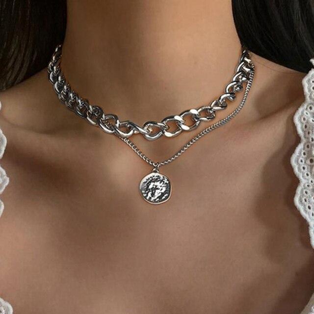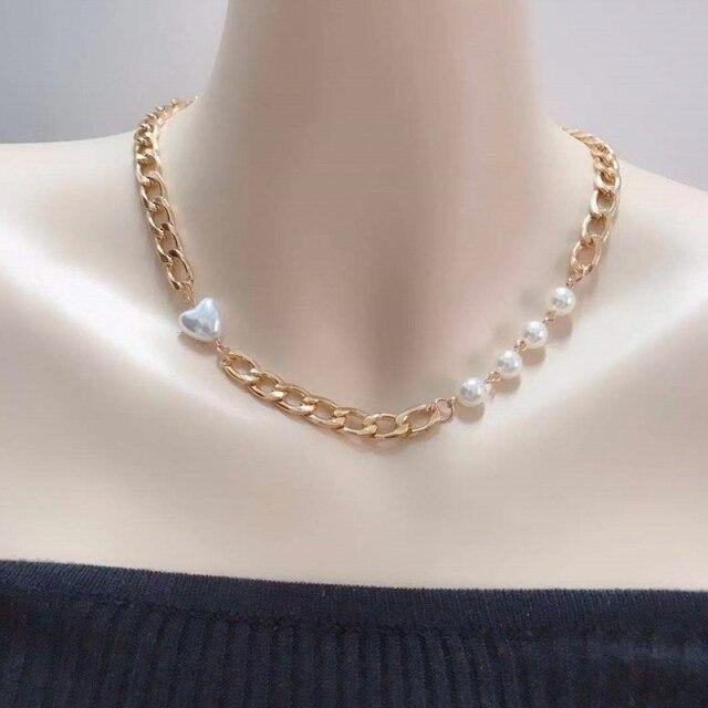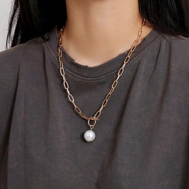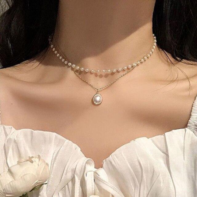 Fashion Pearl Heart Multi-layer Necklaces For Women Gold Silver Metal Hanging Portrait Necklaces 2021 Trend Statement Jewelry