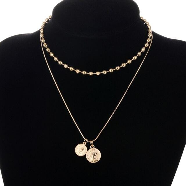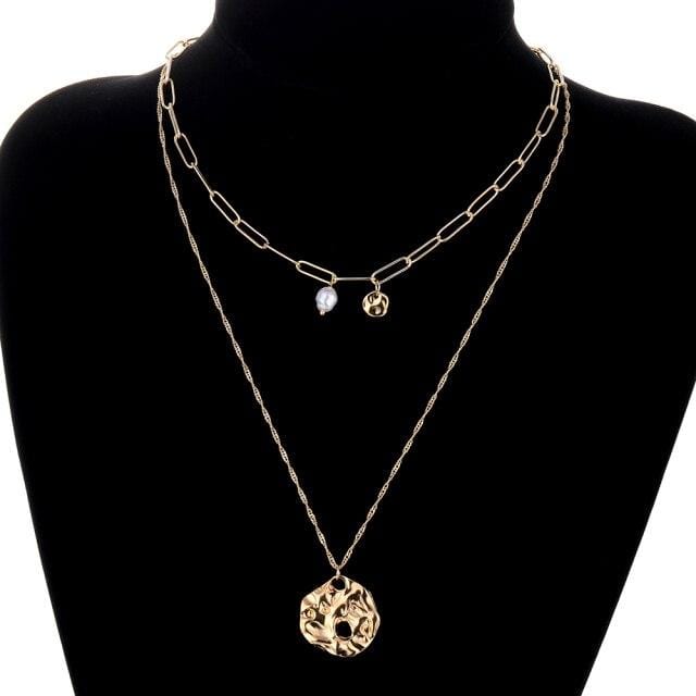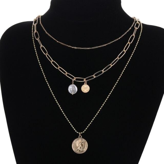 FNIO Fashion MultiLayer Portrait Pendants Necklaces For Women Gold Metal Crystal Pearl Necklace New Design Jewelry Gift