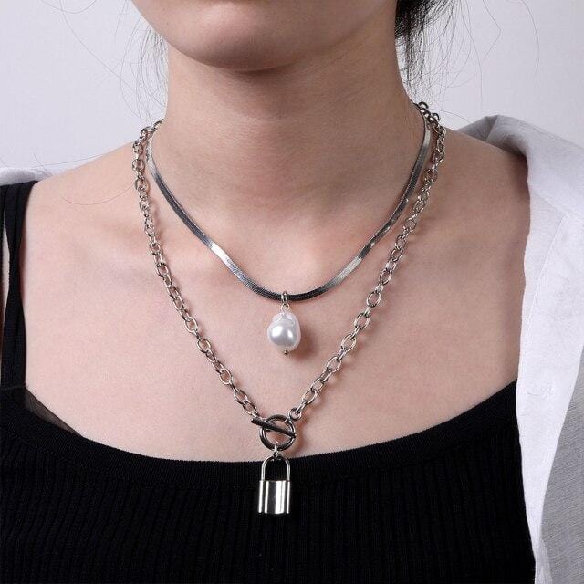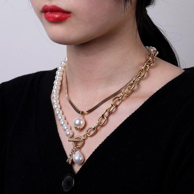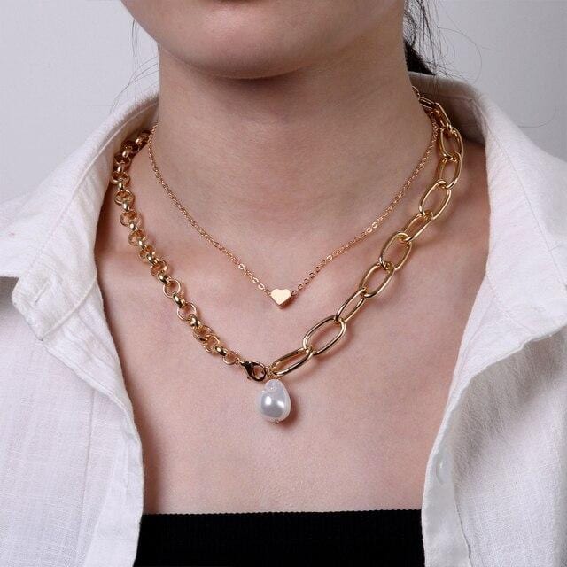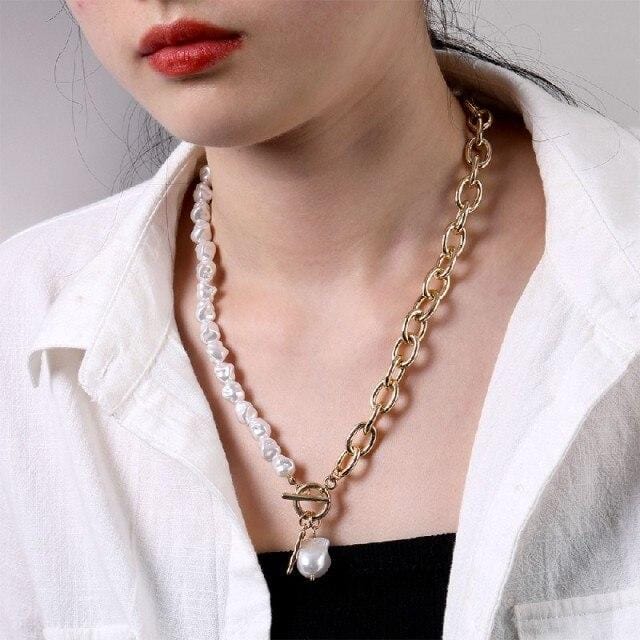 FNIO Fashion Pearls Geometric Pendants Necklaces For Women Gold Metal Snake Chain Necklace New Design Jewelry Gift