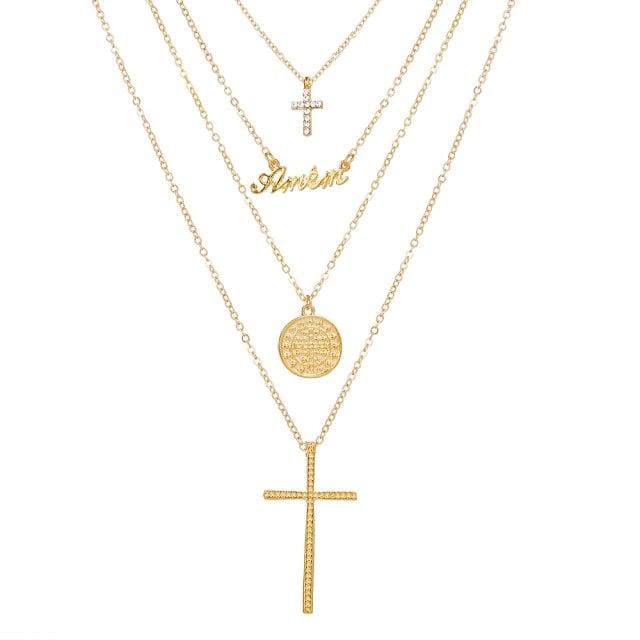FNIO New Fashion Trendy Jewelry Cross Coin Chain Link Necklace Gift For Women Girl ожерелье