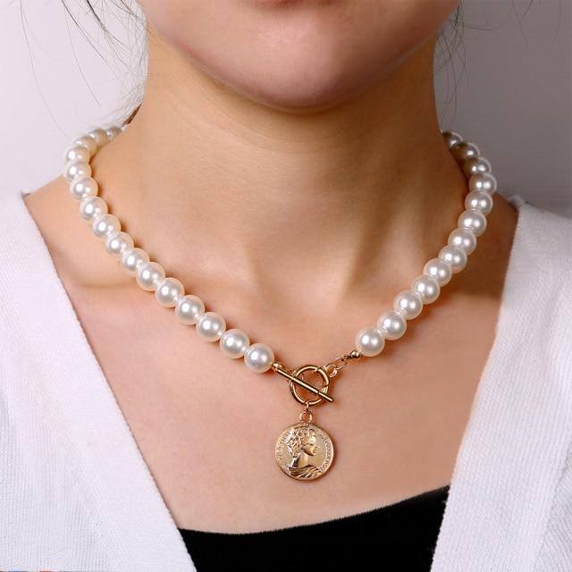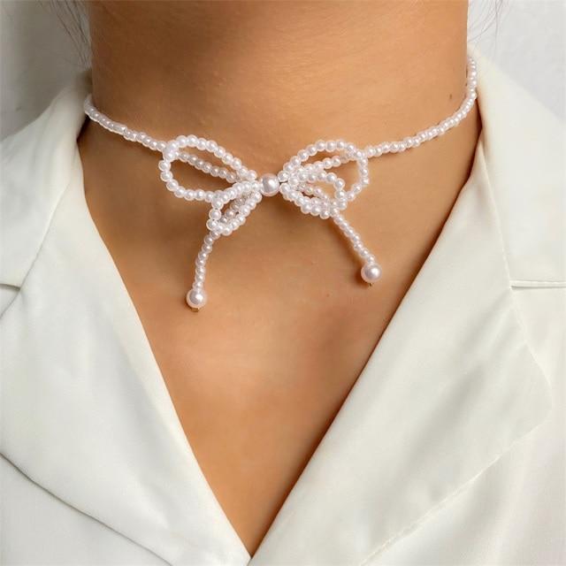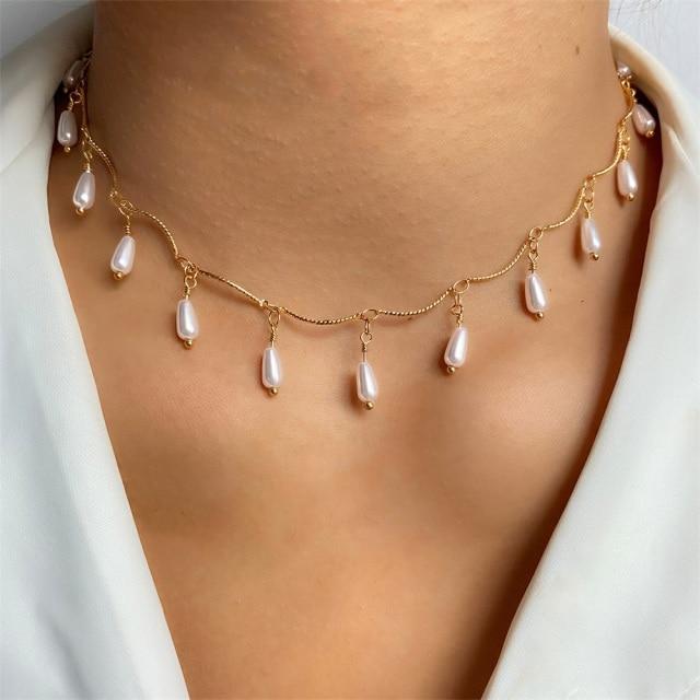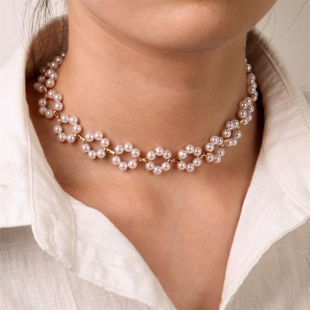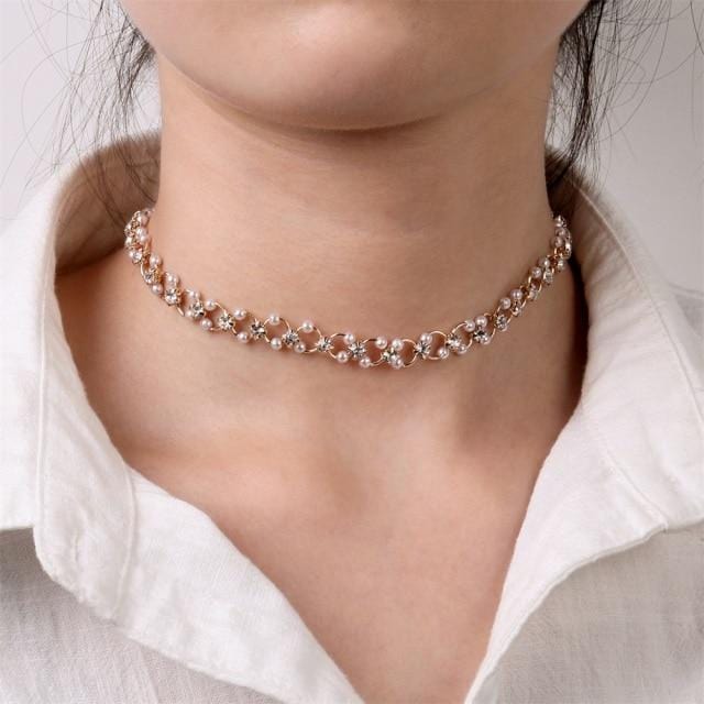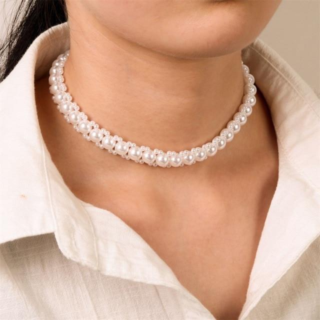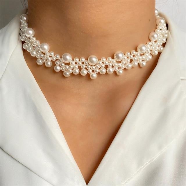 FNIO Pearl Chain Choker Necklace For Women Collar Goth Necklaces Jewellery Christmas Party Girl Halloween New Chocker