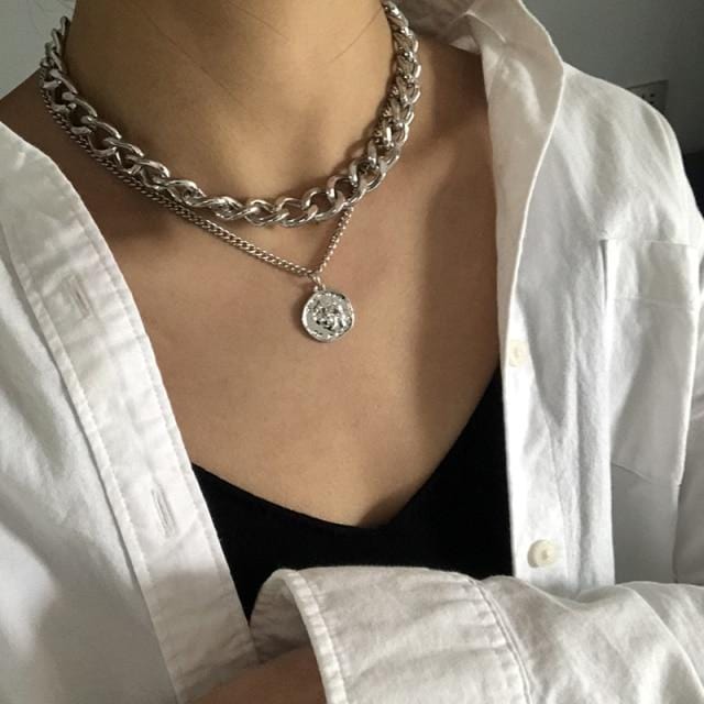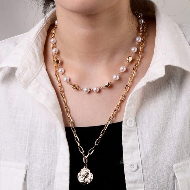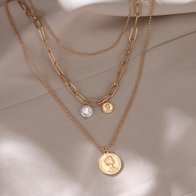 FNIO Vintage Multi Layered Women's Necklaces Pearl Round Coin Gold Necklaces Bohemia Fashion Long pendant Necklace 2020 Jewelry