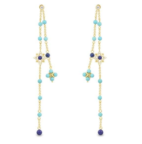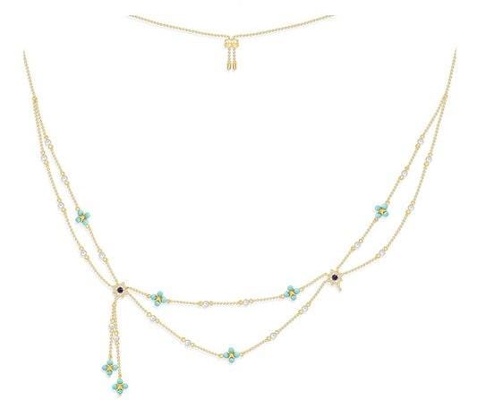 July New Monaco Pearl Blue Stone Bracelet Double Necklace 925 Sterling Silver 1:1 Women's Jewelry Gift