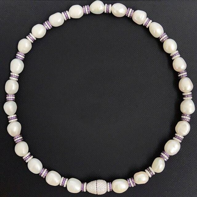 S925 Sterling Silver Pearl Round Ring French Temperament Baroque Pearl Bracelet Necklace Female Fashion Luxury Monaco Jewelry