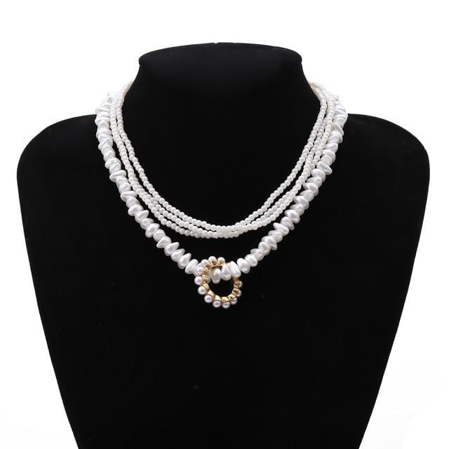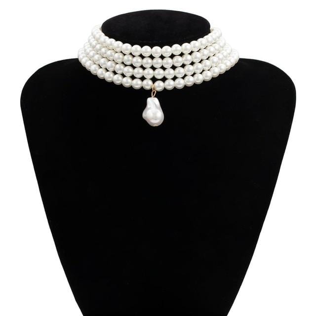 SHIXIN Layered Short Pearl Choker Necklace for Women White Beads Necklace Wedding Jewelry on Neck Lady Pearl Choker Collar Gifts