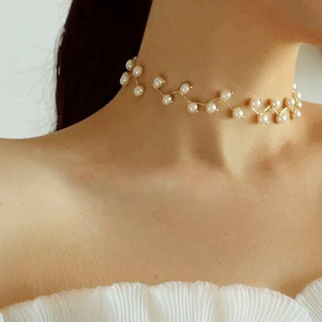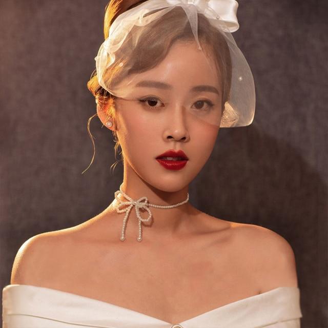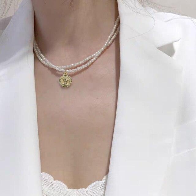 17KM 2020 Elegant Flower Pearl Choker Necklaces For Women Gold Coin Bow Knot Pendant Necklace Long Chain Jewelry Party Gifts